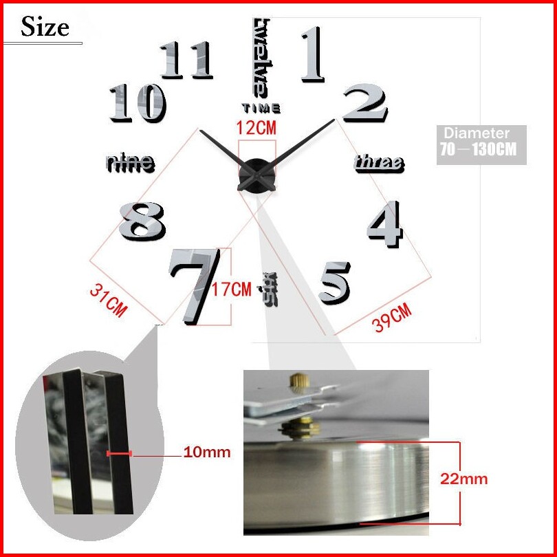 Taffware Jam Dinding Besar Diy Giant Wall Clock Quartz Creative Design 80-130cm Jam Dingding Besar