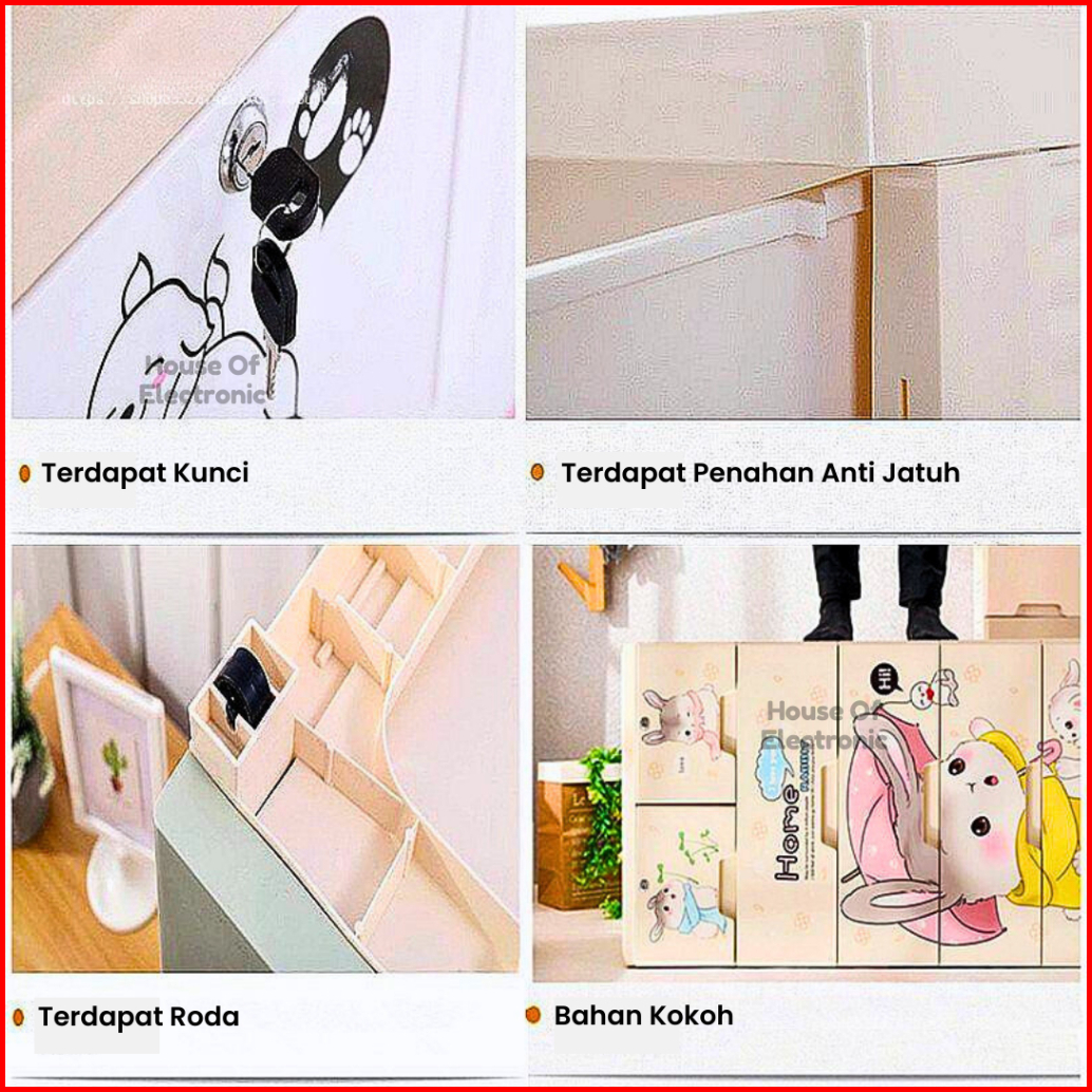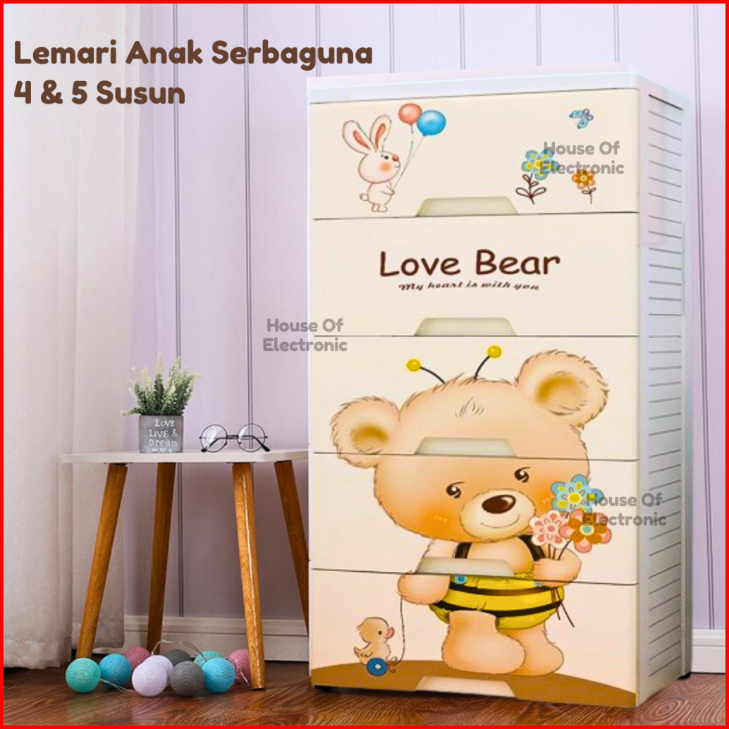 Lemari Plastik Susun Bear 4 Dan 5 Tingkat Tempat Penyimpanan Laci Multifungsi Lemari Pakaian Anak Ada Kunci Storage Box