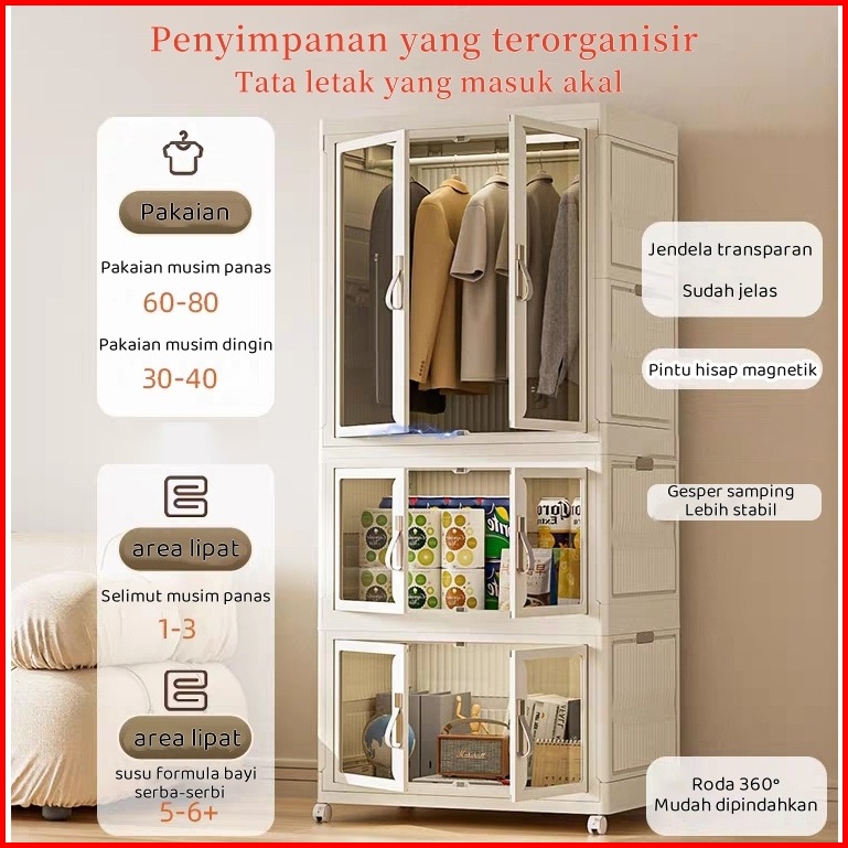 Kapasitas Besa Multi-lapisan Dapat Dilipat Lemari Penyimpanan Lemari Pakaian Multifungsi Ekstra Besar Storage Box Bebas