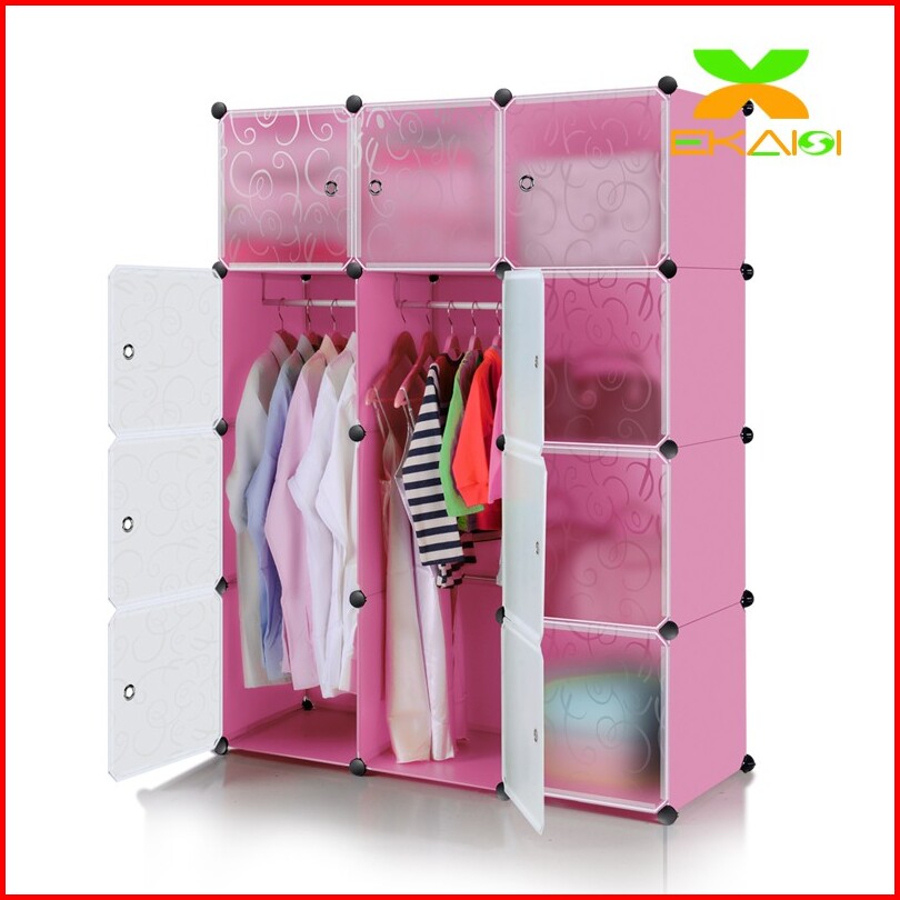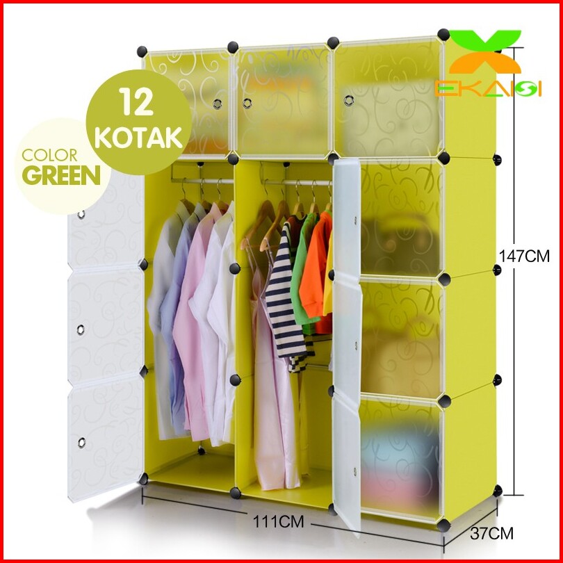 Lemari Pakaian Plastik Rak Susun Serbaguna Lemari Baju Dewasa Lemari Portable Diy 12 Kotak Polos