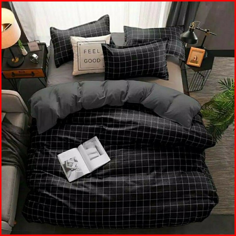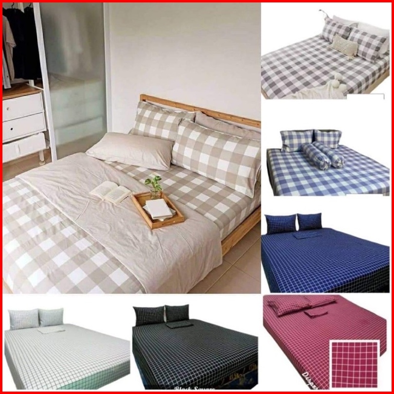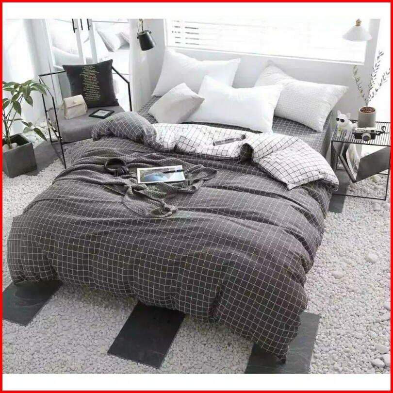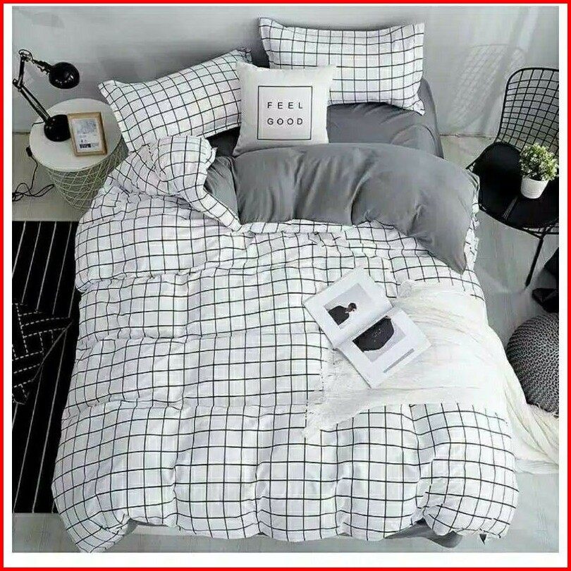 Sprei Homemade Aistetic Kece Sprei Keren Kotak-kotak Warna Hitam Abu Biru Putih 90x200 120x200 160x200 180x200 200x200