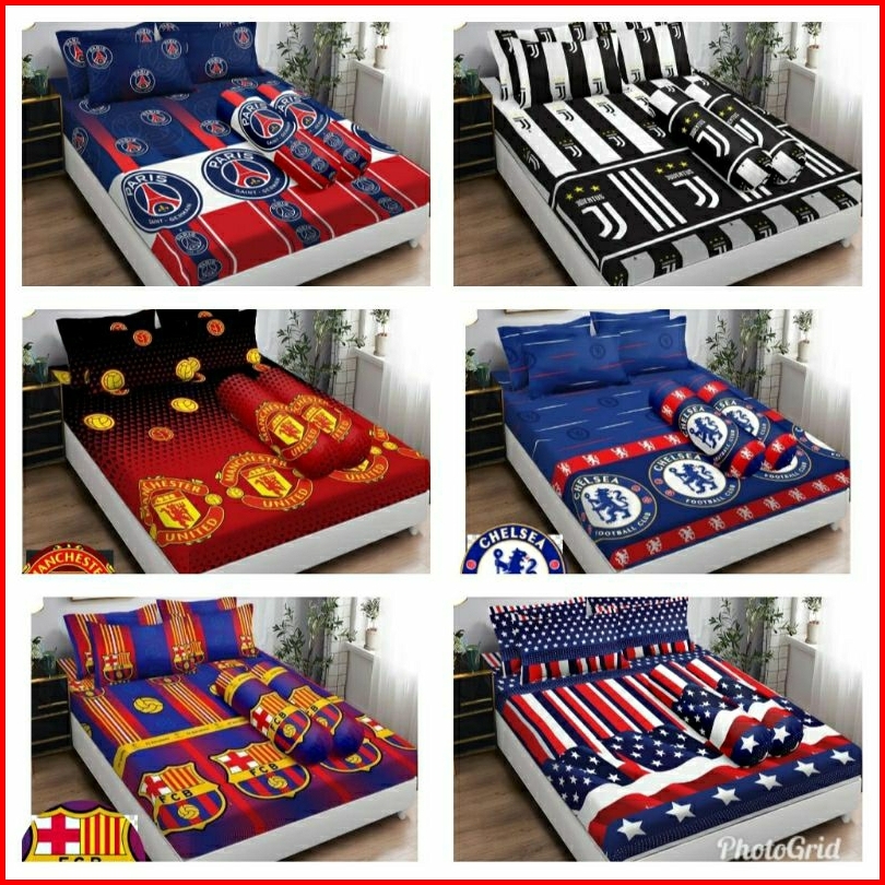 Sprei Lady Rose 160x200 180x200 Motif Bola Sepak Bola Soccer Liga Inggris Liga Spanyol Chelsea Mu Red Red Devils Setan M