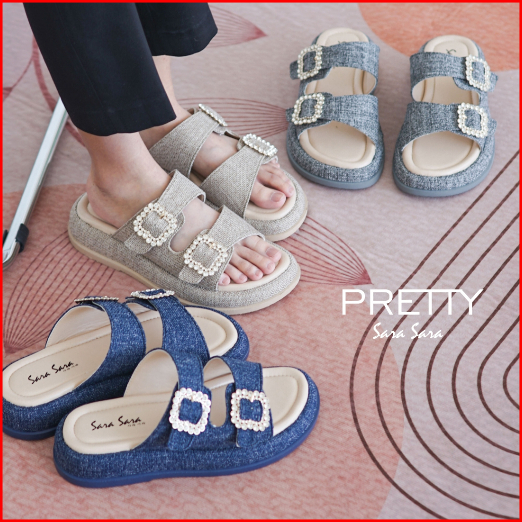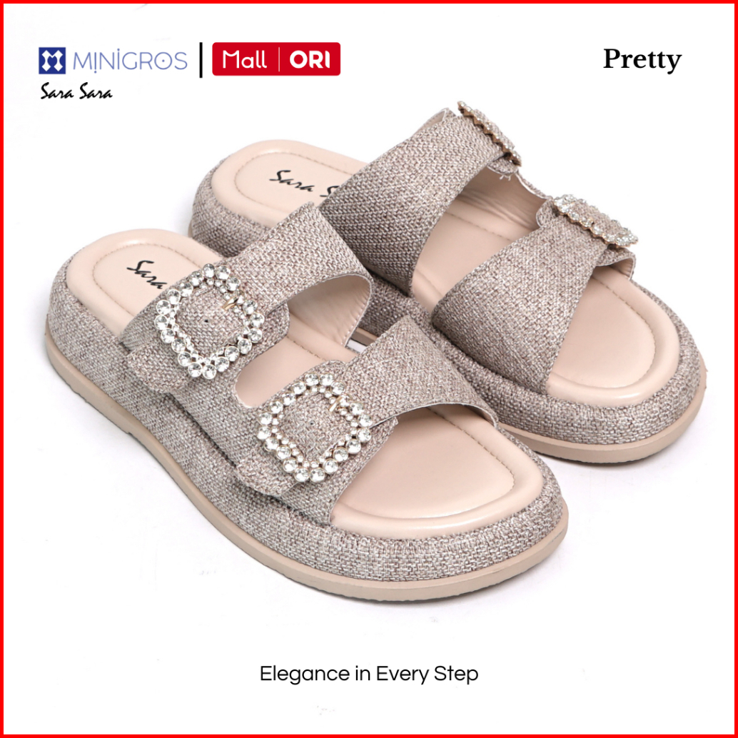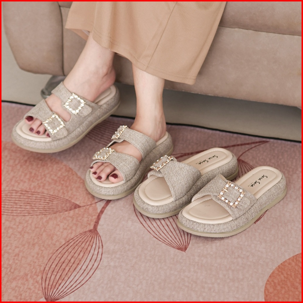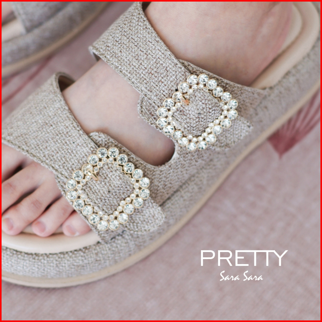 Sara Sara Pretty Sandal Slop Platform Wanita Gesper Berlian