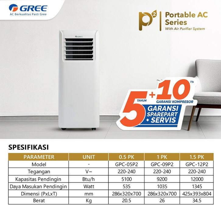 GREE AC Portable 0,5 PK - Air Purifier - Multiplen Speeds - Warna Putih - Model GPC-05P2