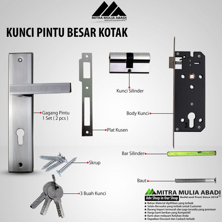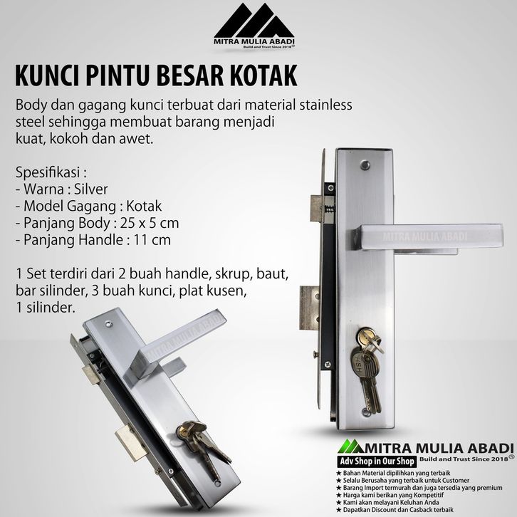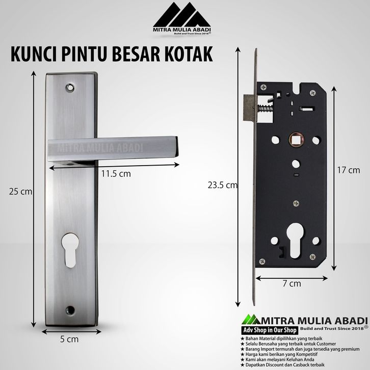 Peralatan Kunci Pintu Kunci Rumah Full Set Gagang Kotak ukuran Besar 25cm Kualitas Premium