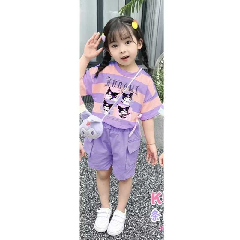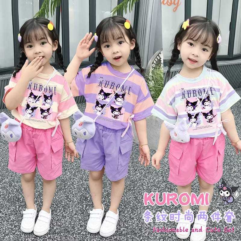 SETELAN KUROMI ANAK PEREMPUAN MODEL IMPORT / SET ANAK PEREMPUAN MODEL KOREA TERLARIS READY 1-6 TAHUN