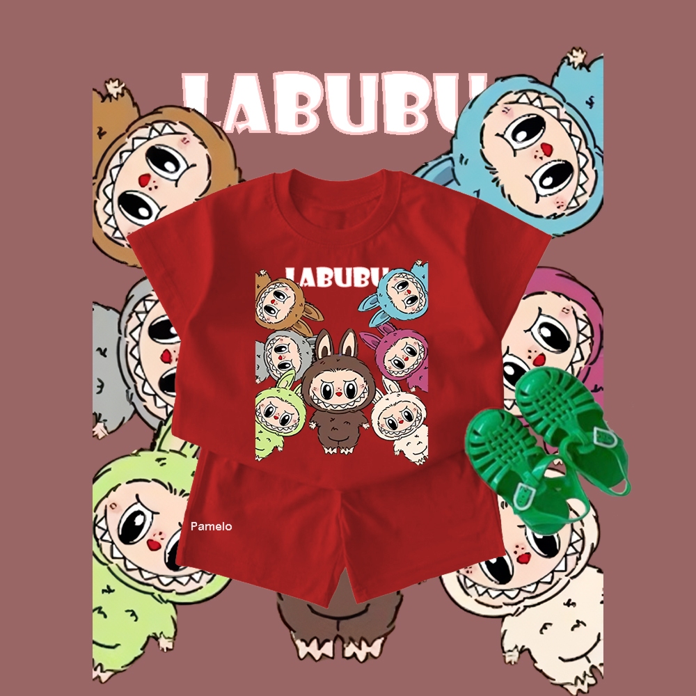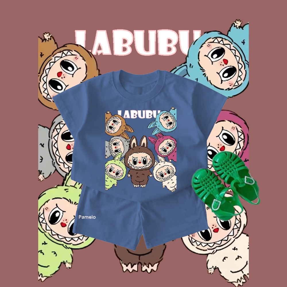 PAMELO.ID SETELAN ANAK UNISEX THE MONSTER LABUBU SIZE 4-10 TH KAOS 3/4 CEWEK CELANA PENDEK HARIAN BAJU ANAK BESAR BIG SIZE ONE SET ANAK BESAR LABUBU VIRAL 7 LABUBU