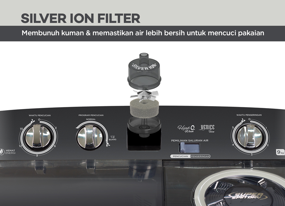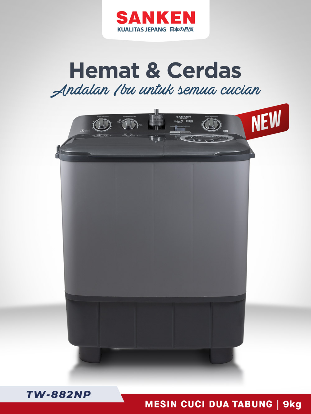 Sanken Mesin Cuci 2 Tabung TW-882NP 9Kg Hitam