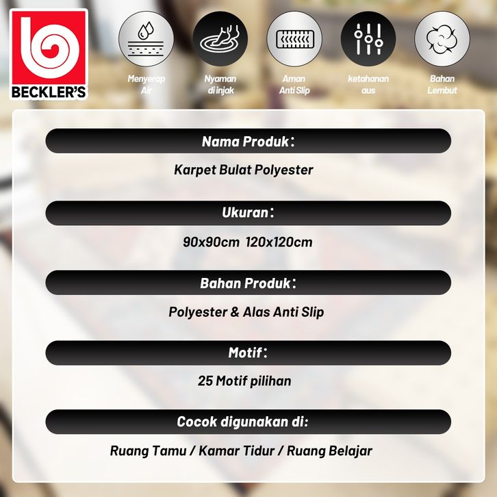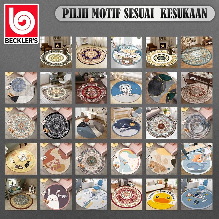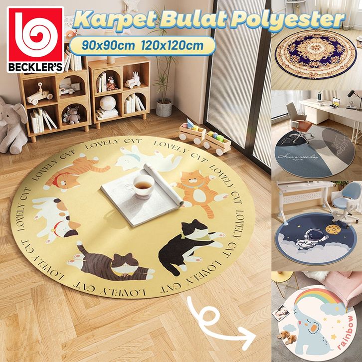 Karpet Lantai Polyester Bulat 90x90CM 120x120CM Premium Anti Slip Karpet Lantai Motif Karpet Lantai Aesthetic Stylish