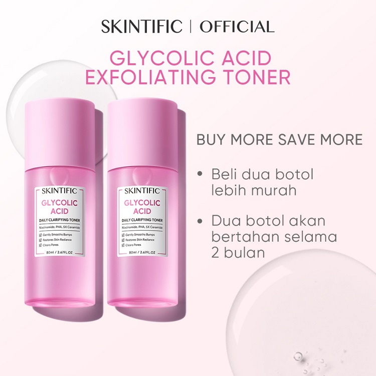 SKINTIFIC - Glycolic Acid Exfoliating Brightening Daily Clarifying Toner 80ml | Toner Eksfoliasi Wajah Exfoliating Acnes