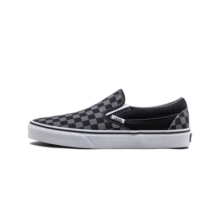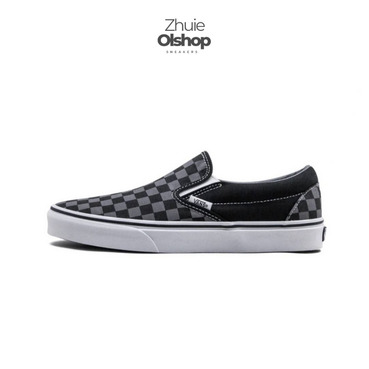 Sepatu Vans Classic Slip On Black Pewter Checkerboard Original Premium Zhuie Olshop
