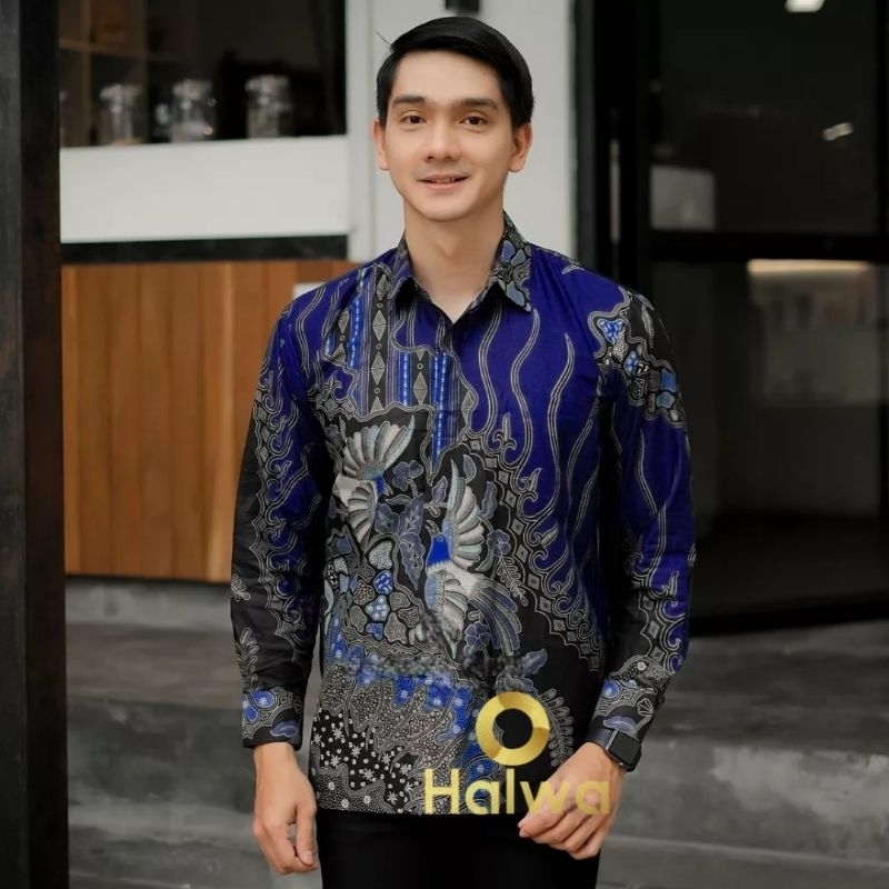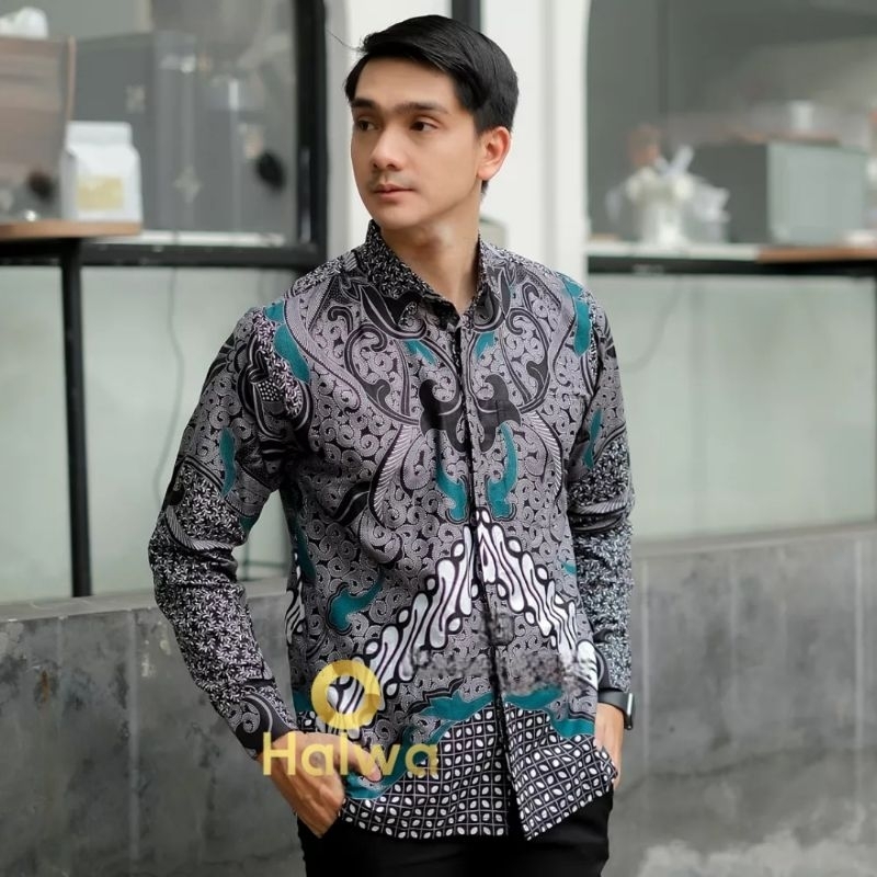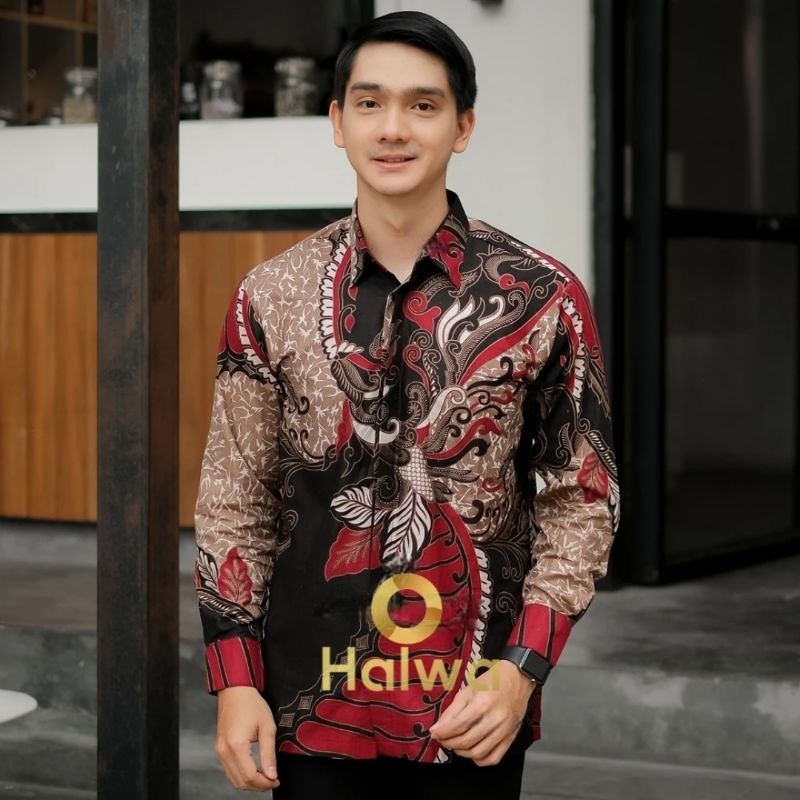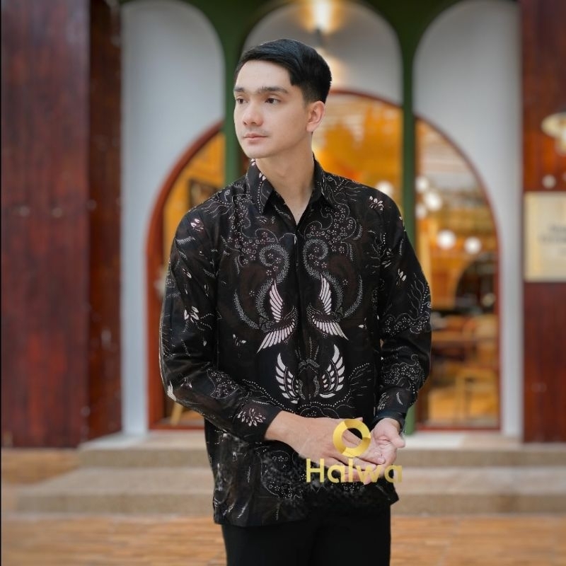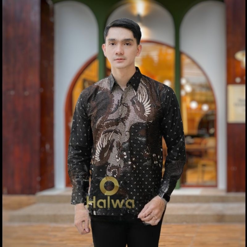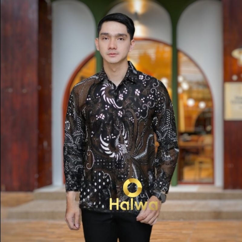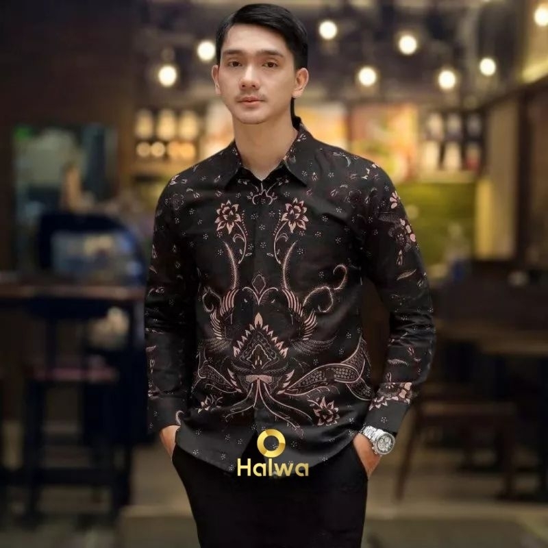 (Gratis Ongkir) Batik Pria hitam kemeja Lengan Panjang Katun