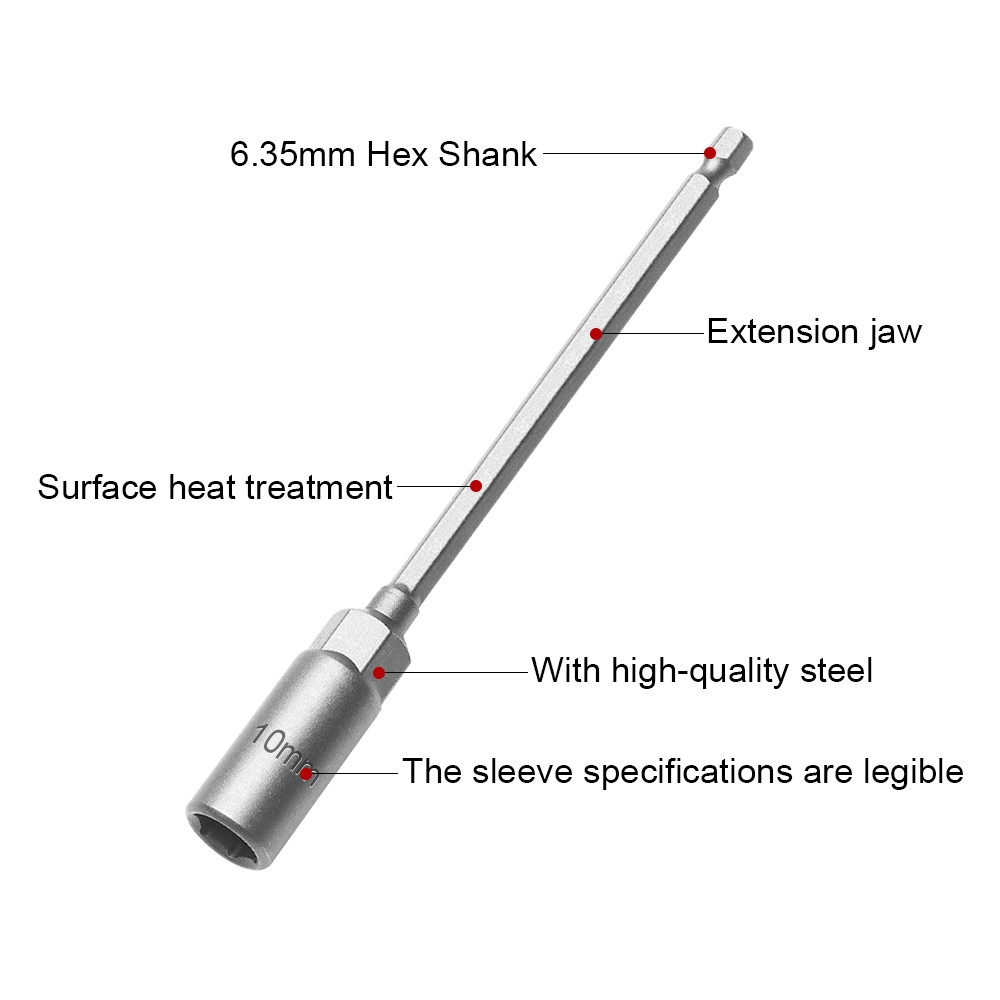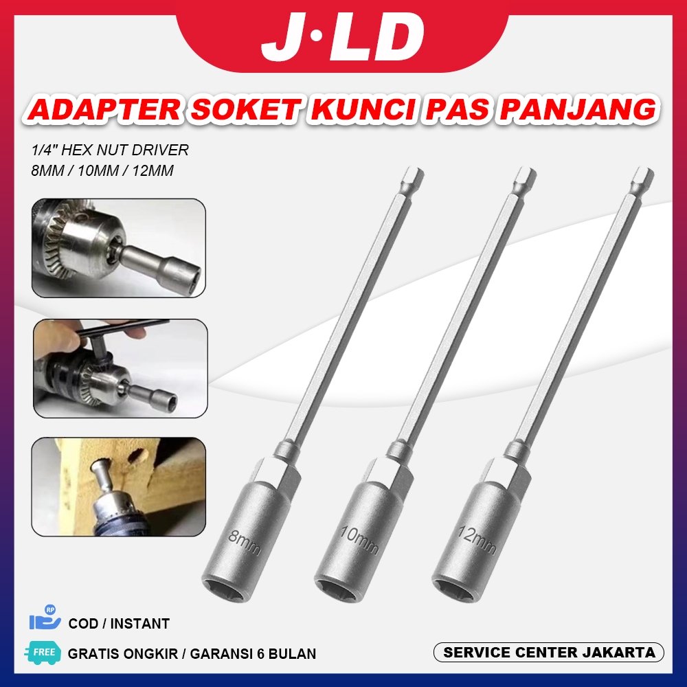 JLD ADAPTER SOKET KUNCI PAS EKSTENSION PANJANG 1/4" HEX NUT DRIVER / SAMBUNGAN SOKET KUNCI PAS 8/10/12MM / MATA BOR