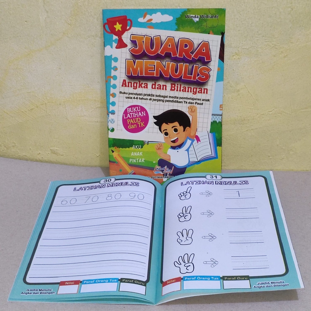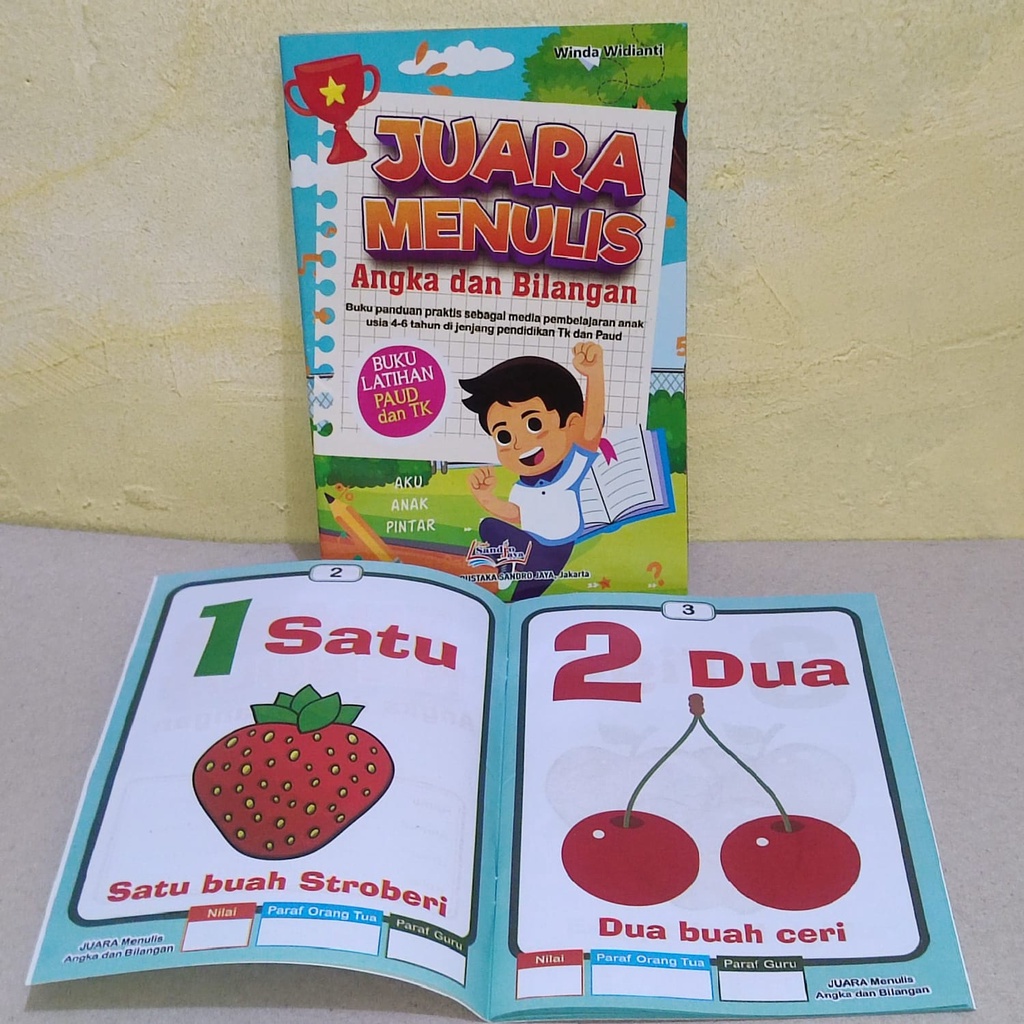 BUKU LATIHAN JUARA MENULIS ANGKA DAN BILANGAN UNTUK ANAK PAUD DAN TK FULL COLOR