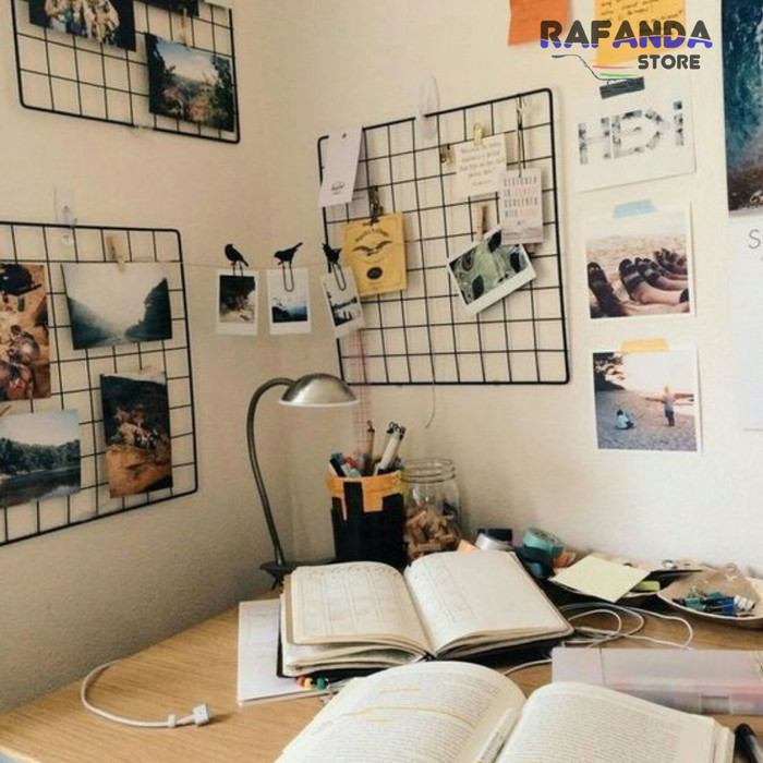 KAWAT RAM DINDING 60X55CM WIRE GRID WALL PAJANGAN FOTO POLAROID NOTES - PUTIH, 60X20