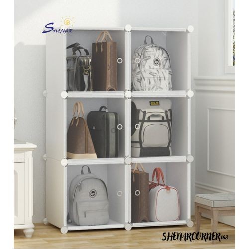 LEMARI TAS PLASTIK/TEMPAT TAS AKSESORIS/RAK TEMPAT BAJU SUSUN SEPATU - GISEL RACK2X3, BIRU