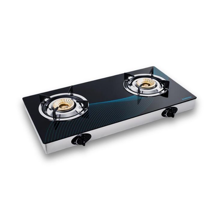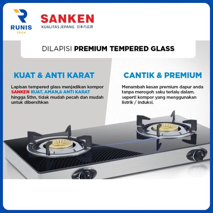 KOMPOR GAS SANKEN 2 TUNGKU SG-363 ORIGINAL BODY KACA TEMPERED GLASS TURBO KUNINGAN API BIRU MURAH TERLARIS GARANSI RESMI