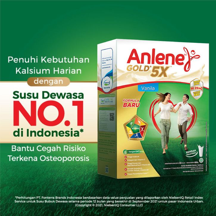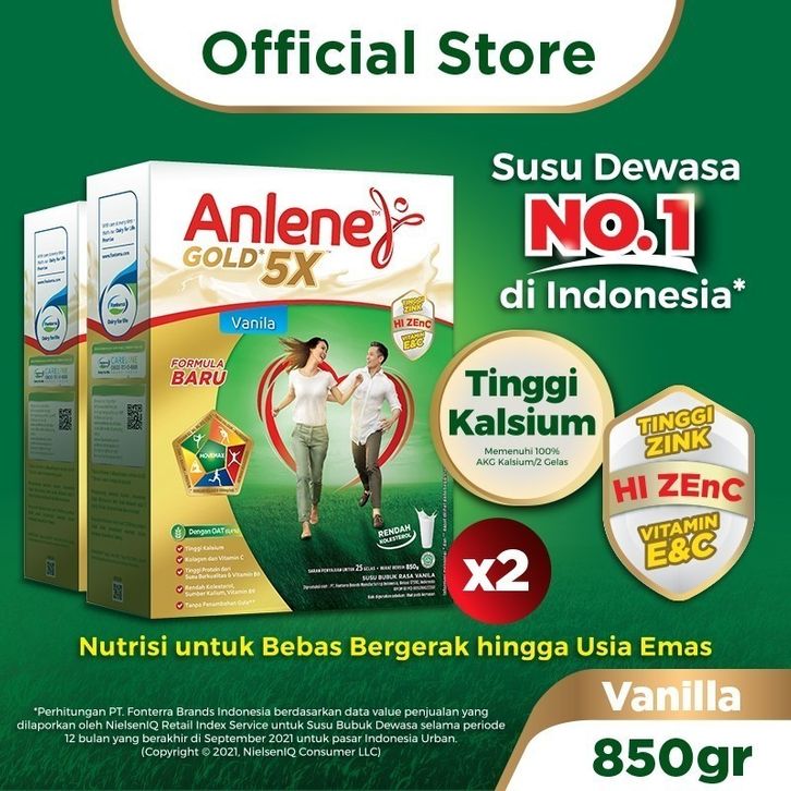 Anlene G6l5 5X Susu Bubuk Dewasa Vanila 2 x 850g - Nutrisi Tinggi Kalsium Untuk Tulang, Sendi, dan Otot