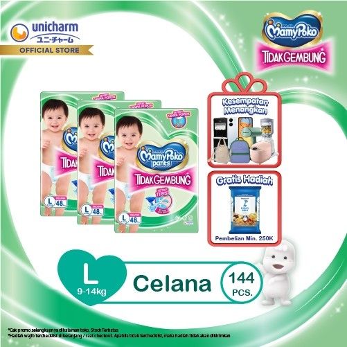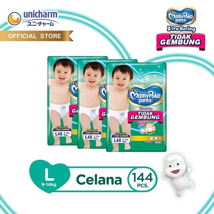 Popok bayi MamyPoko Pants X-tra Kering Slim Tidak Gembung - L 48 - Popok Celana - 3 Packs