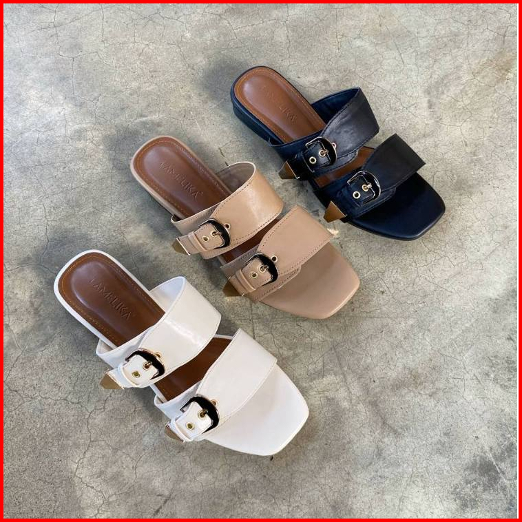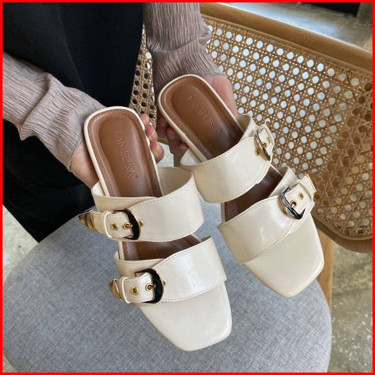 Flora Sandal Flat Teplek Selop Wanita Elegan Slip On By Lamelika