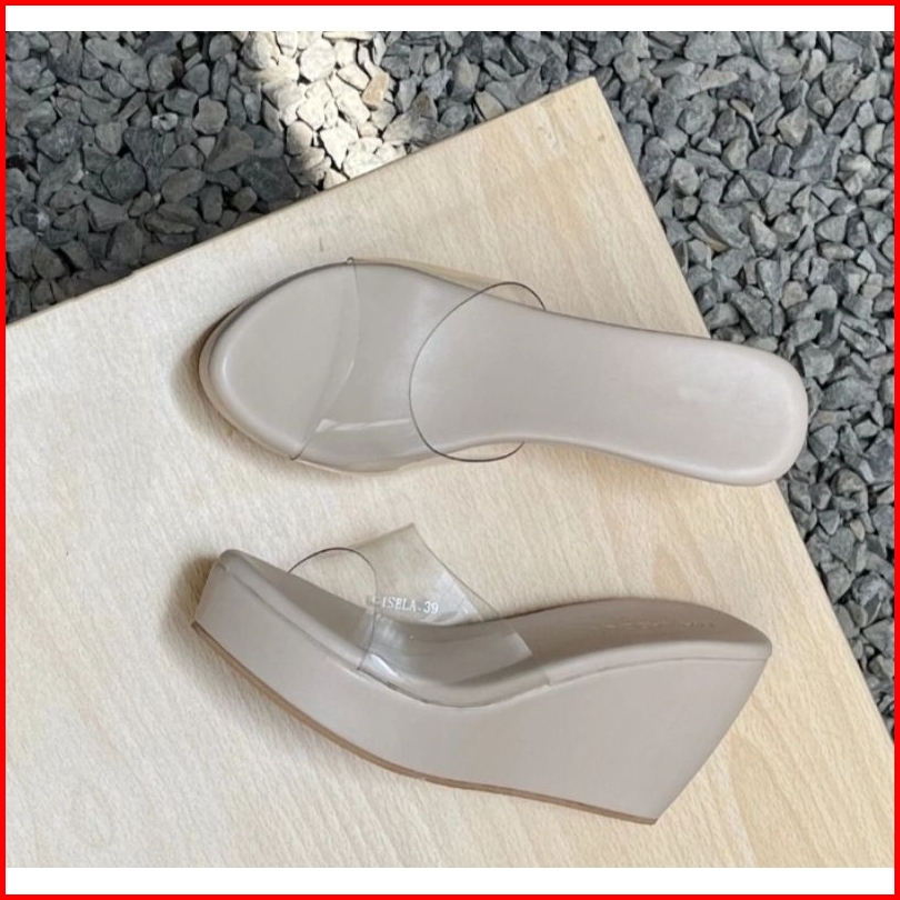 Wedges Sepatu Sandal Transparan 9 Cm