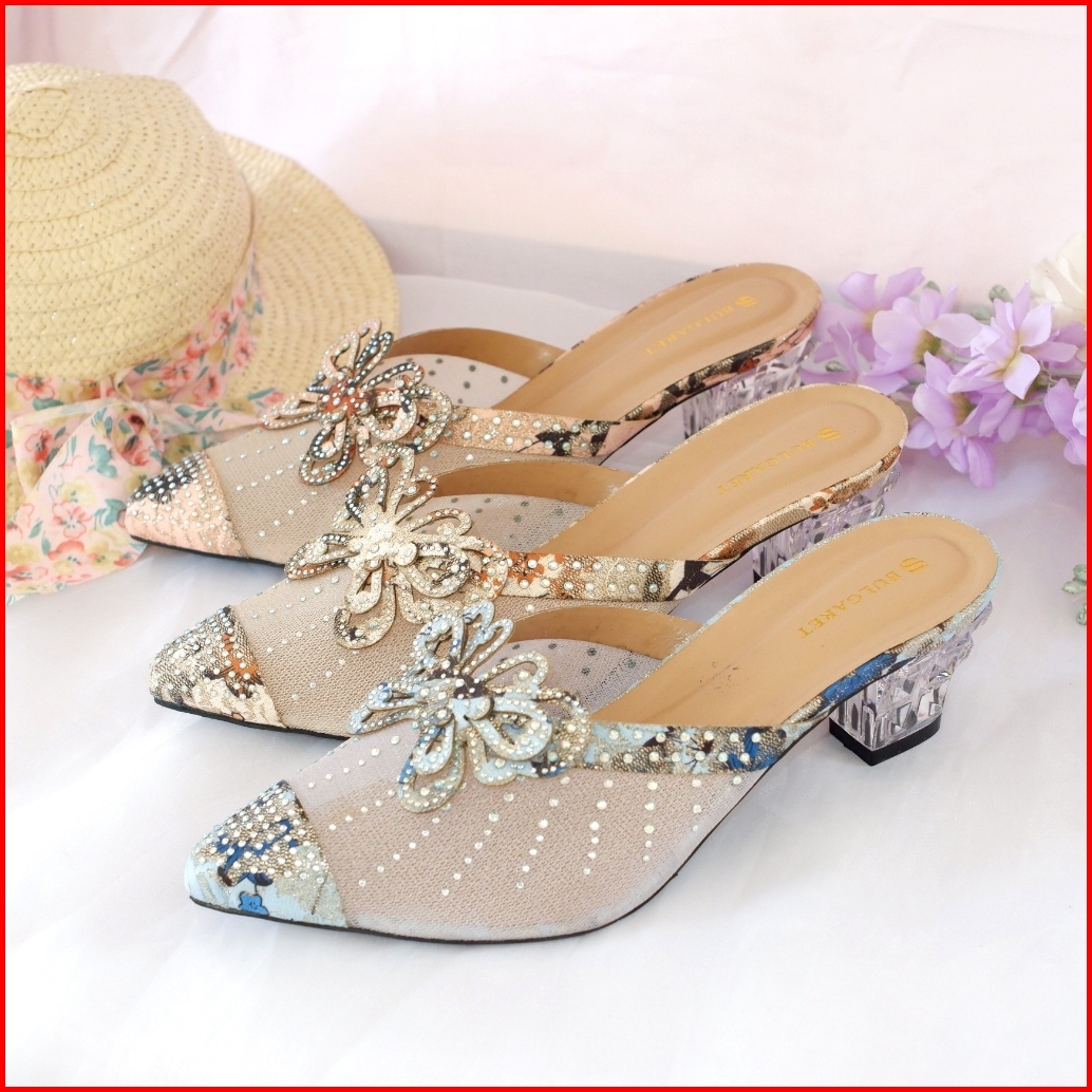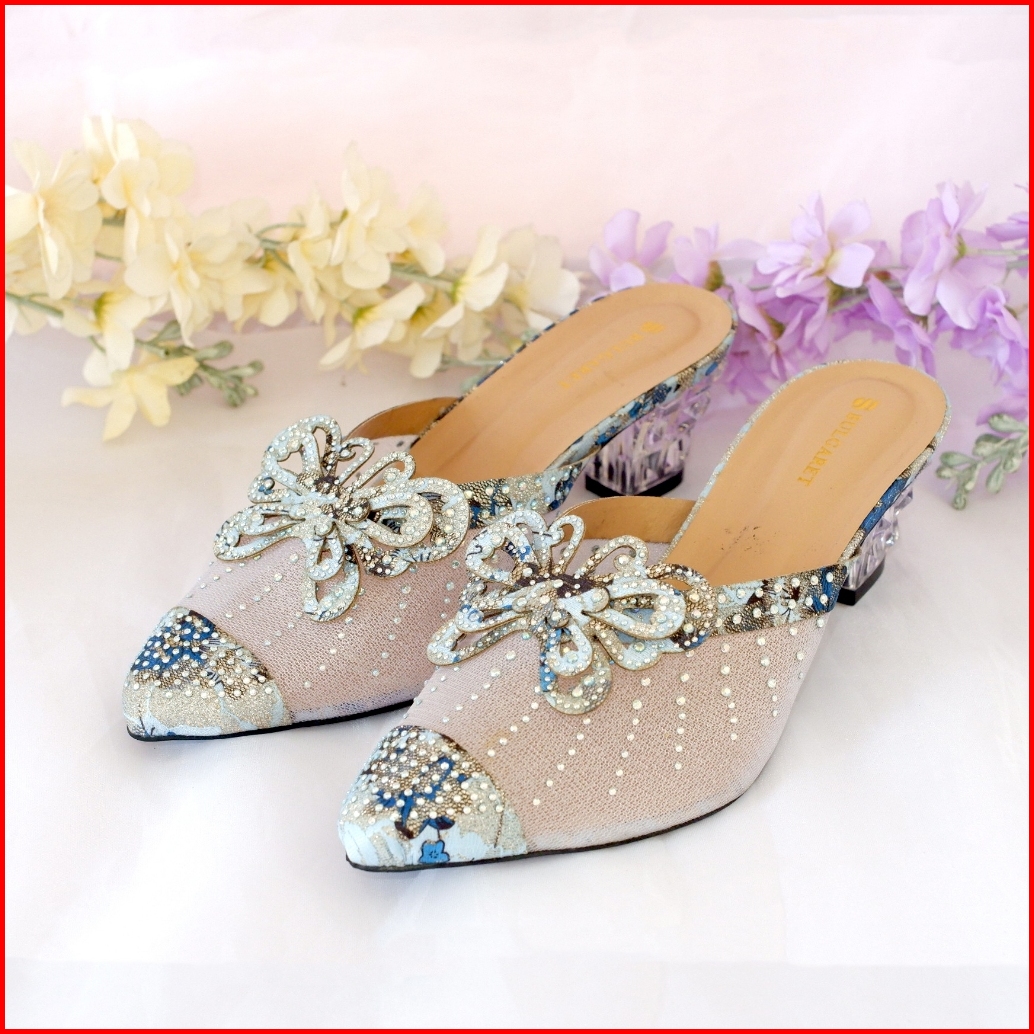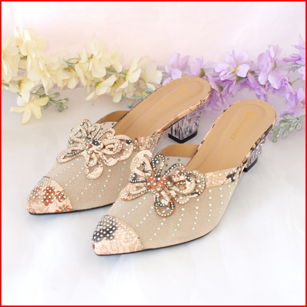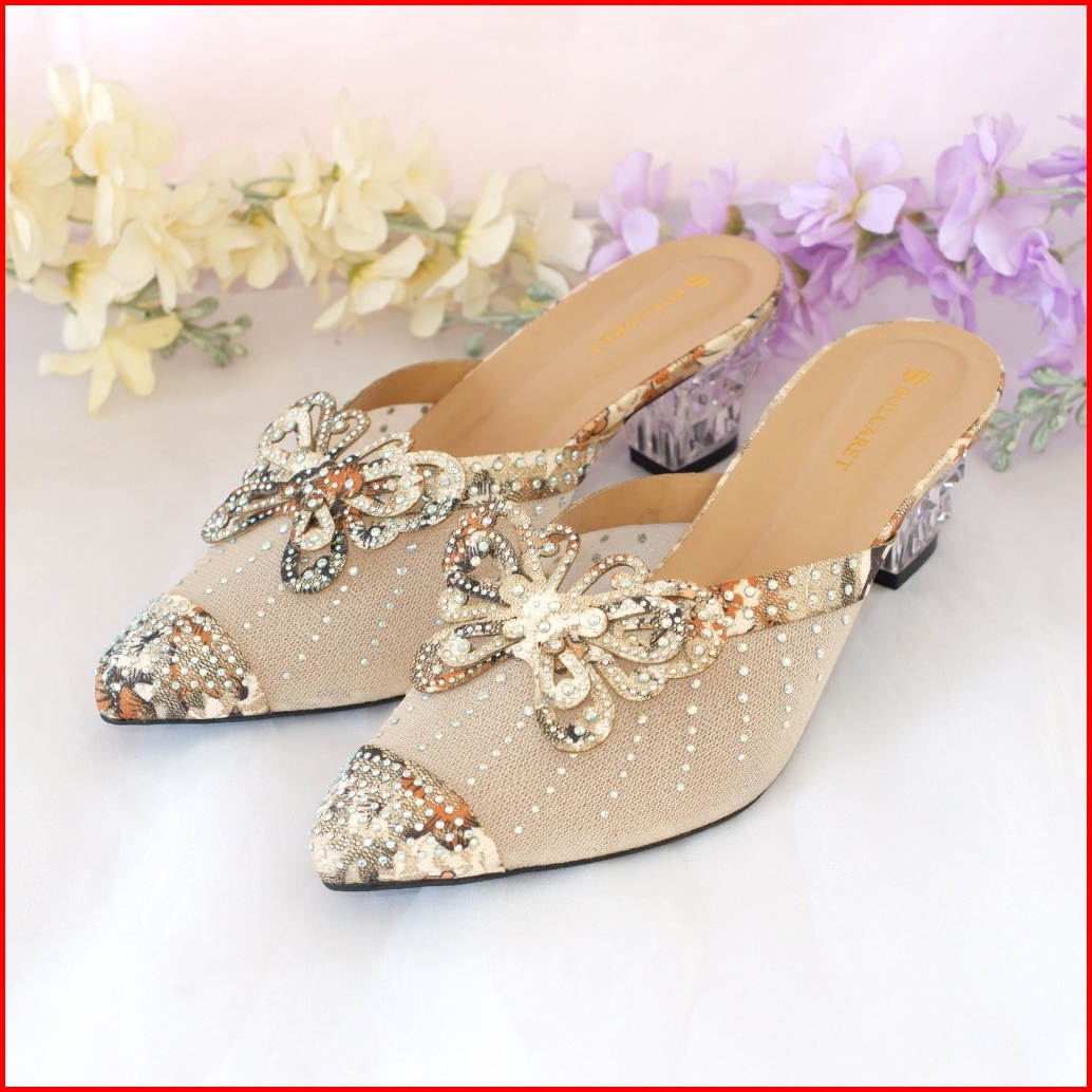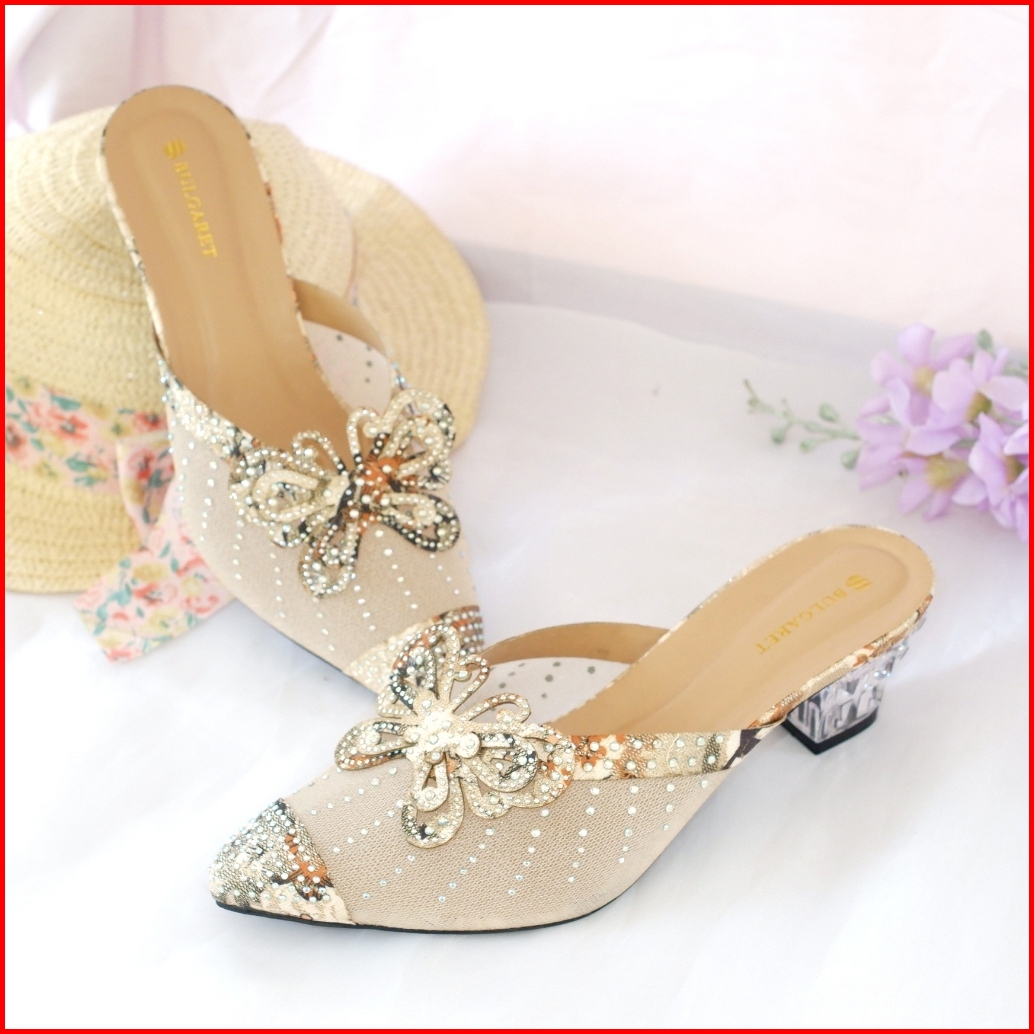 Heels Pesta Wedding Tinggi 5cm Hak Kaca Pita Kupu-kupu Aic 04
