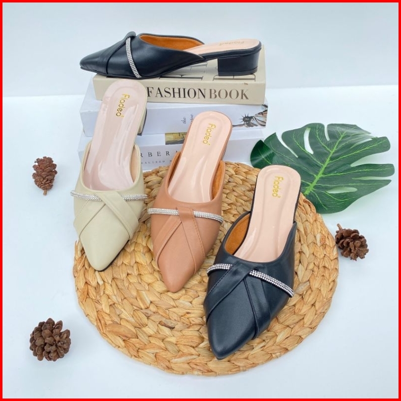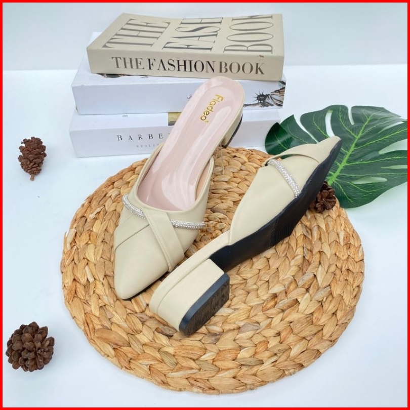 Sepatu Sandal Bustong Wanita Hak 3cm Model Mewah Nyaman Cream Moka Hitam Ukuran 3741 Hf-05