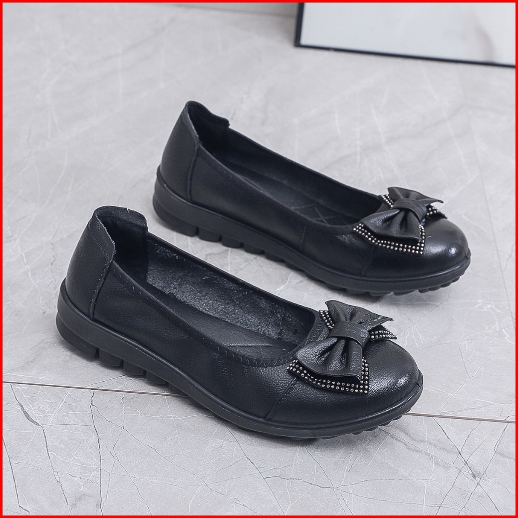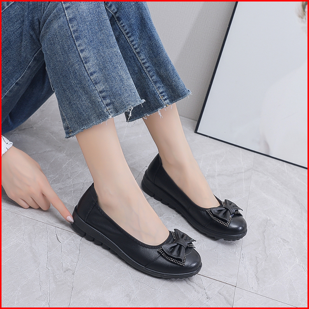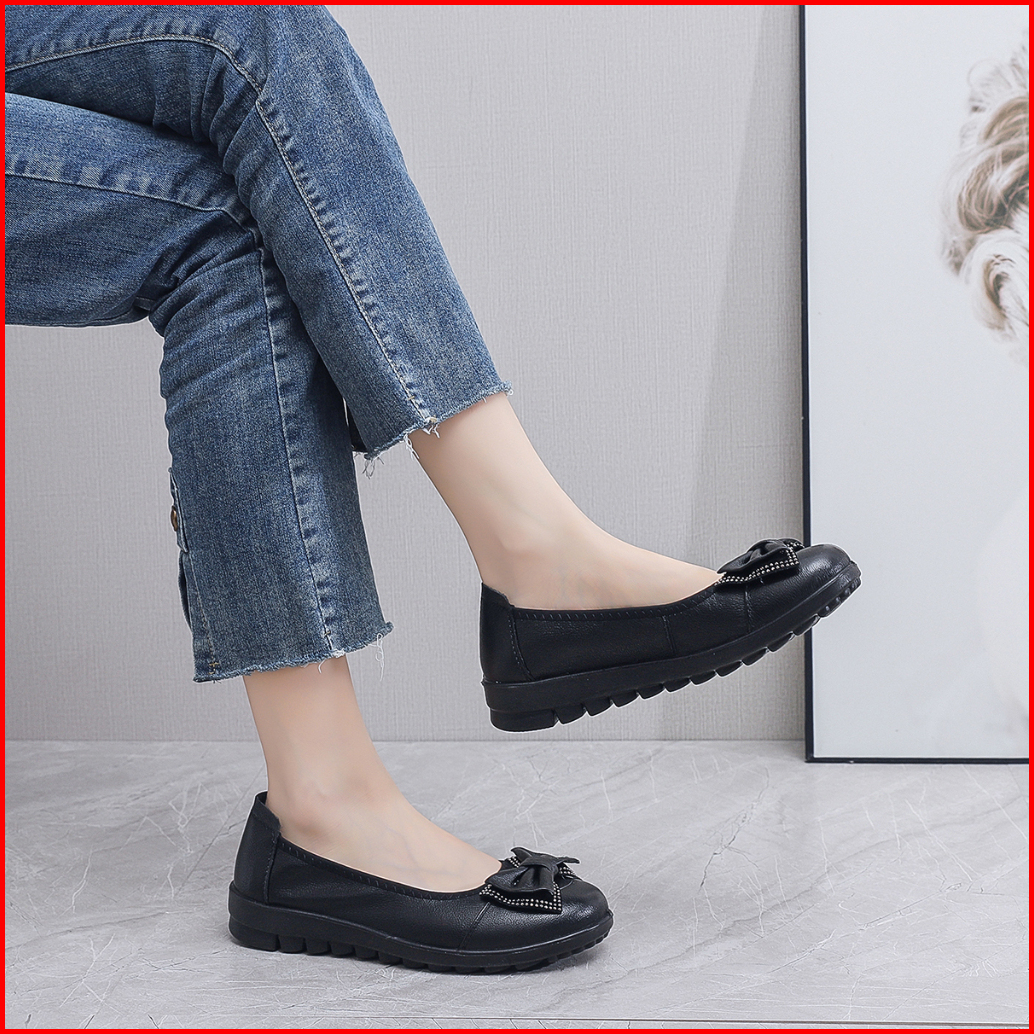 Lurad Sepatu Hitam Sepatu Cewek Flat Sandal Wanita Hak Rendah Formal Ootd Fashion Sepatu Cantik Slip On 1887