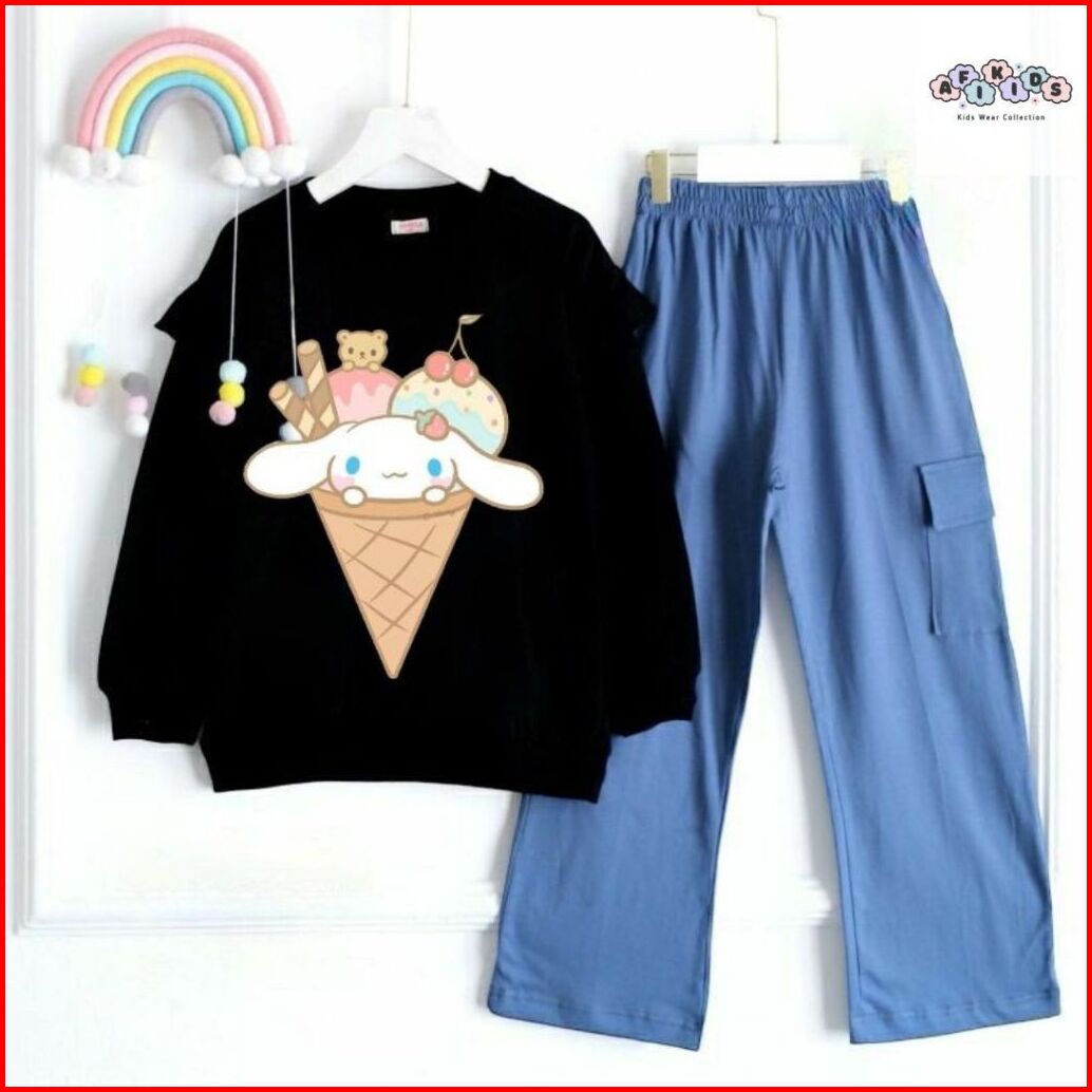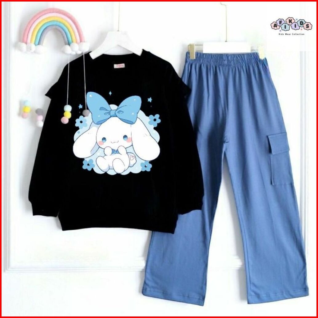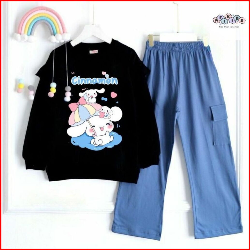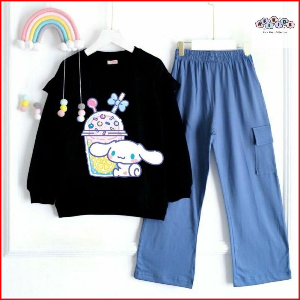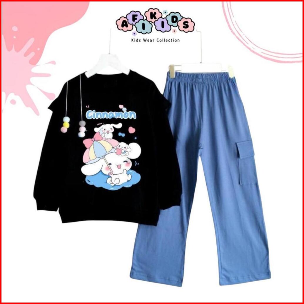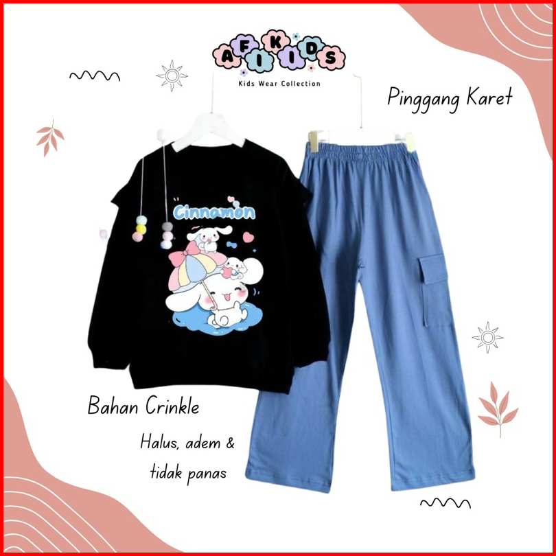 Cinnamoroll Set Kids 3thn-13thn Celana Cargo Crinkle Printing Setelan Cinnamon One Set Anak Remaja Setelan Anak Kekinian