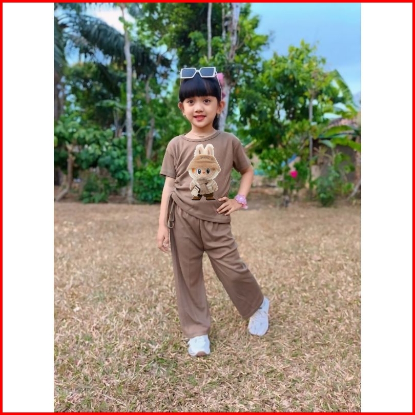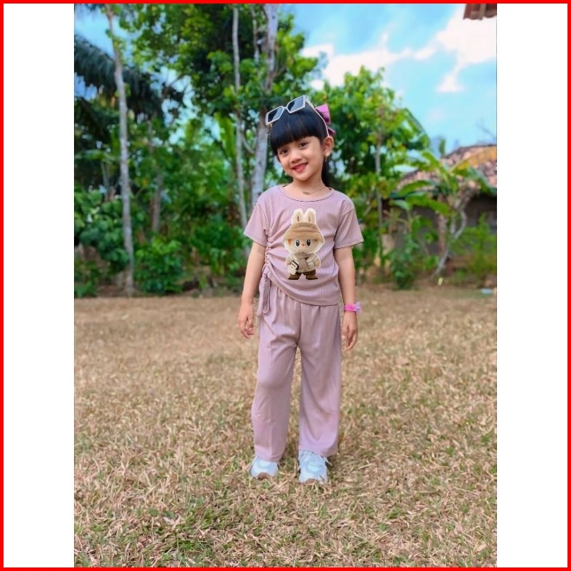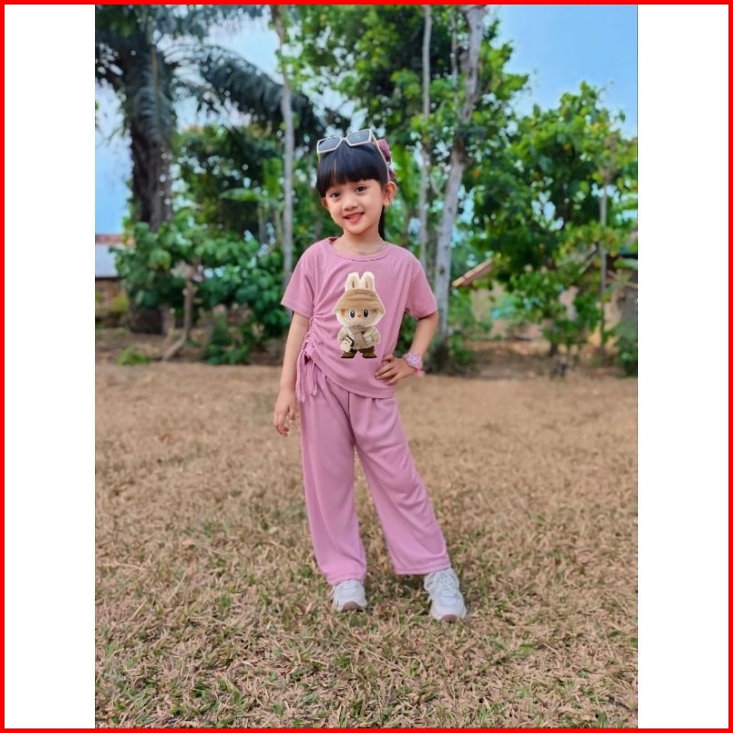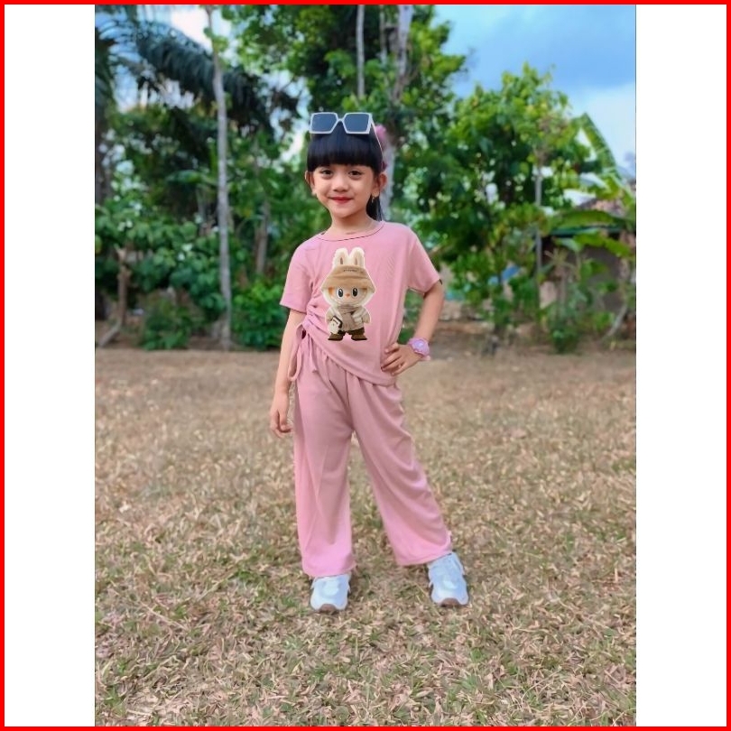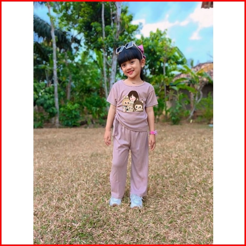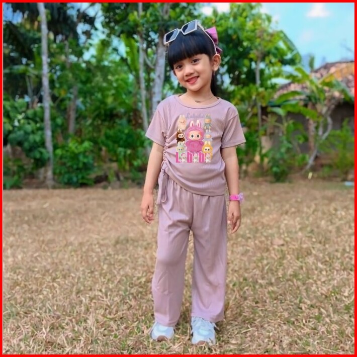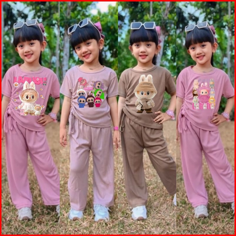 Setelan Anak Perempuan Celana Kulot Panjang Usia 4-11 Tahun Baju Labubu Anak Setelan Fashion Anak Perempuan Setelan Anak