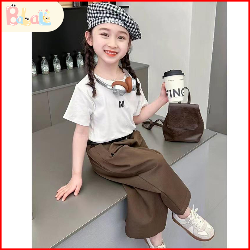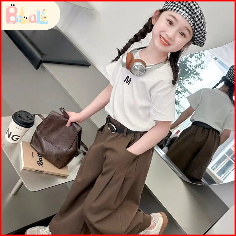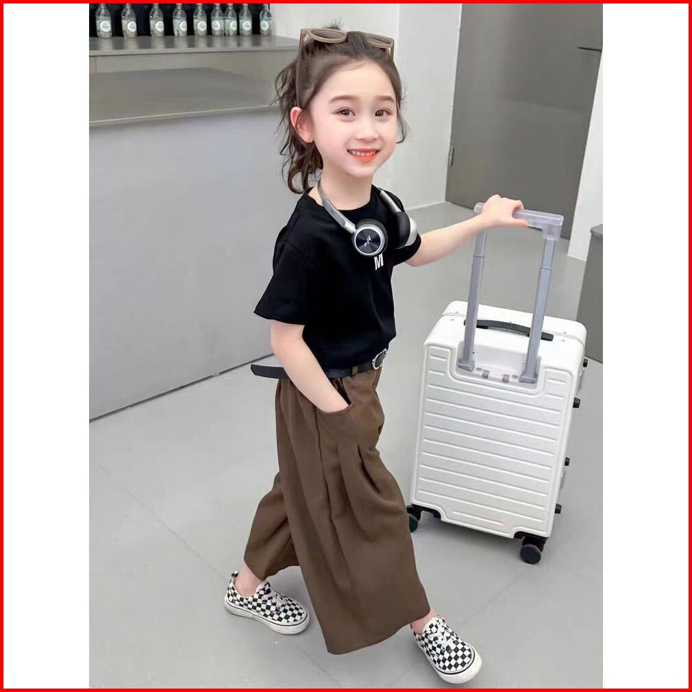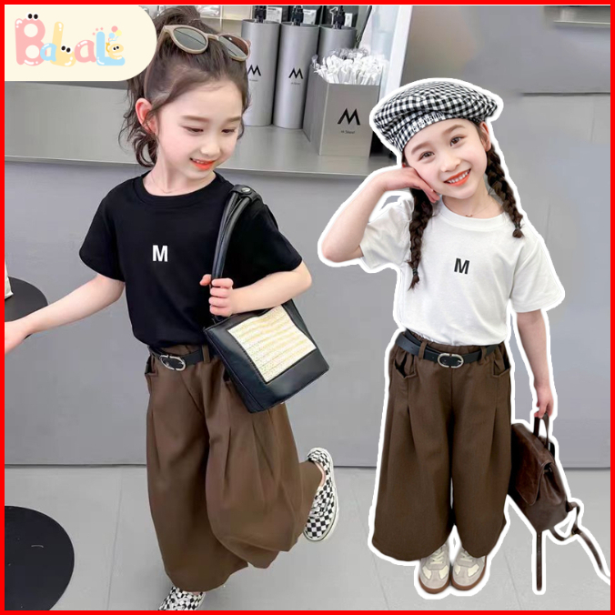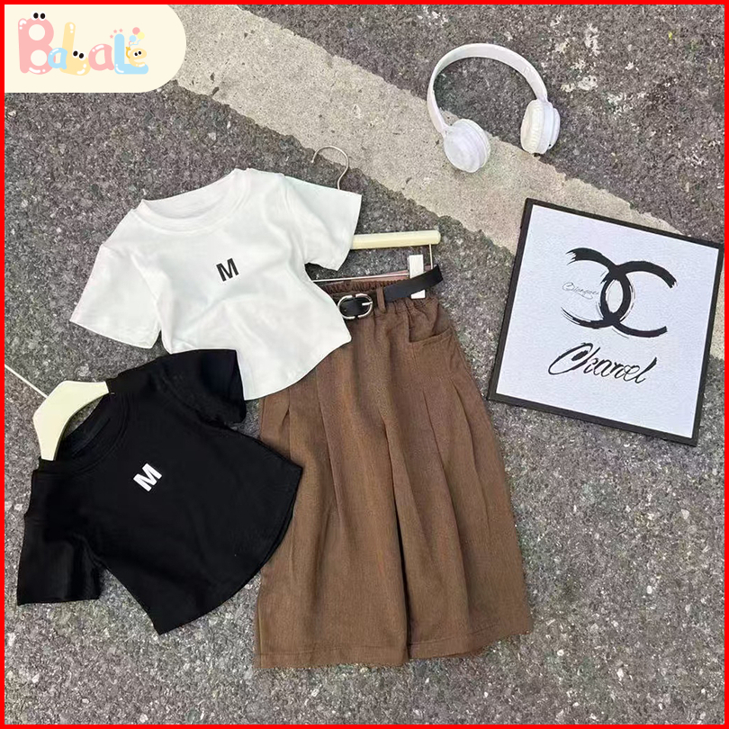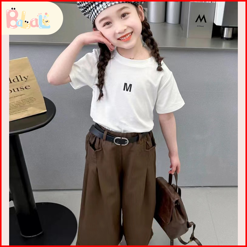 Setelan Anak Perempuan Pinggang Set Kaos Girls T-shirt Shorts Set Baju Sehari-hari Anak 2-8 Tahun