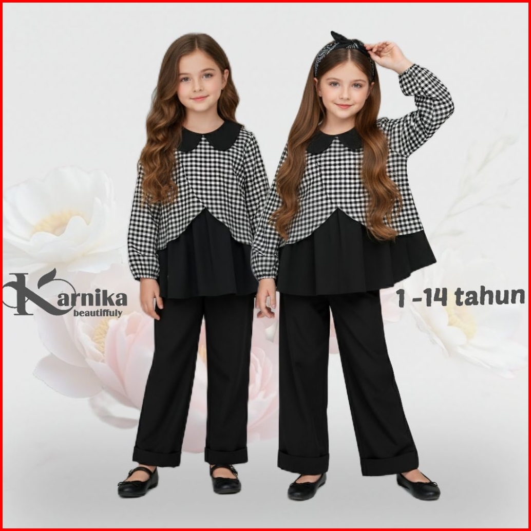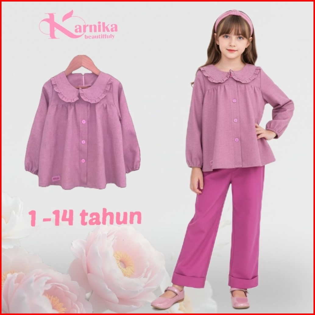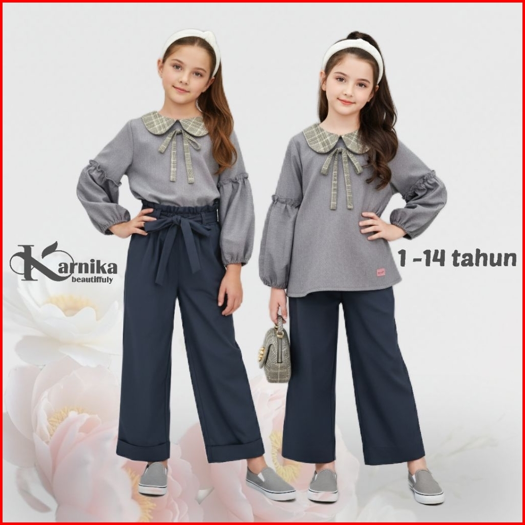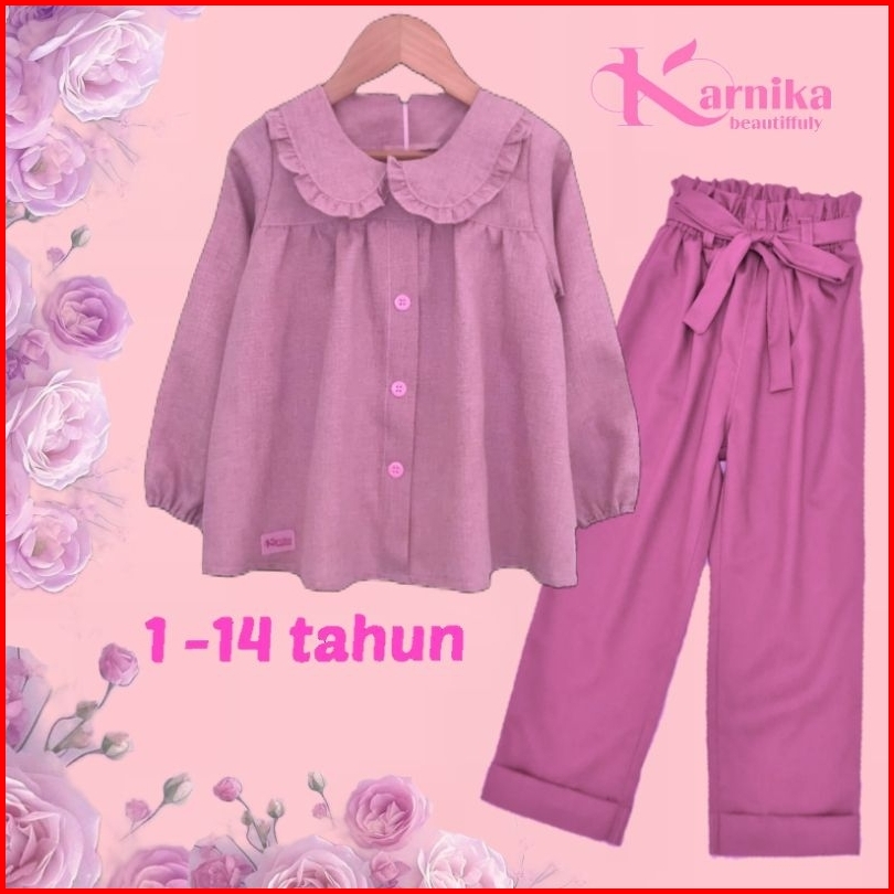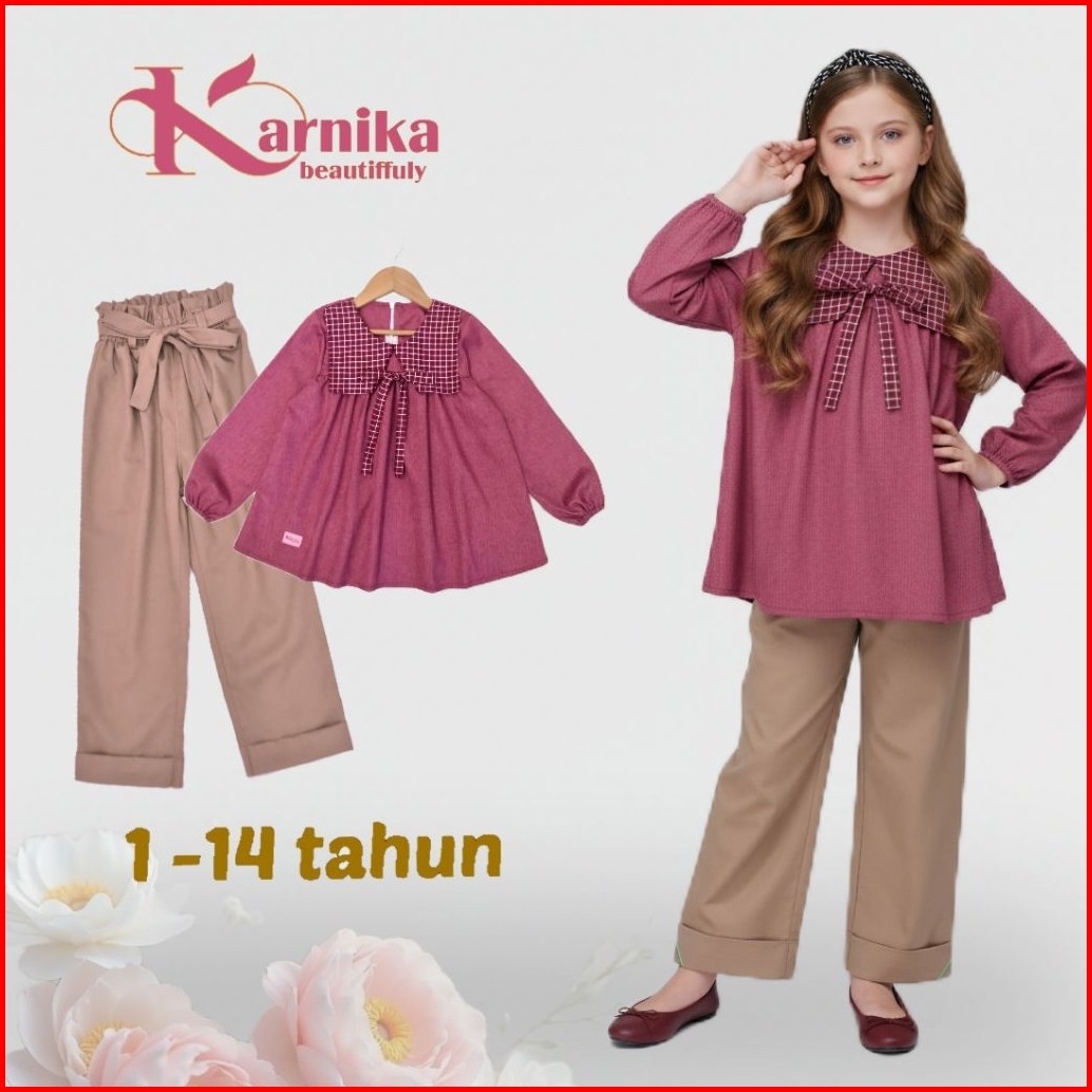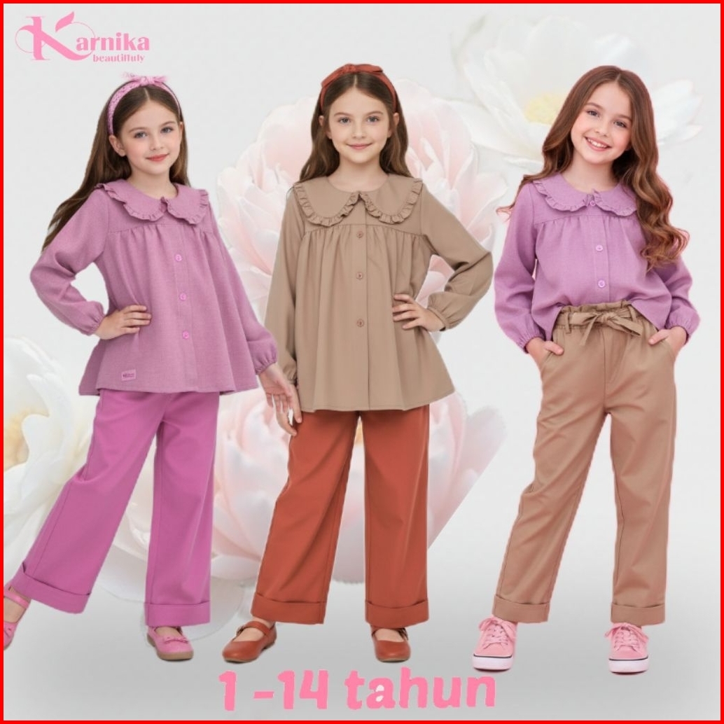 Karnika Baju Anak Perempuan Setelan 1-14 Tahun Set Atasan Blous Muslim Korean Oneset Celana Panjang