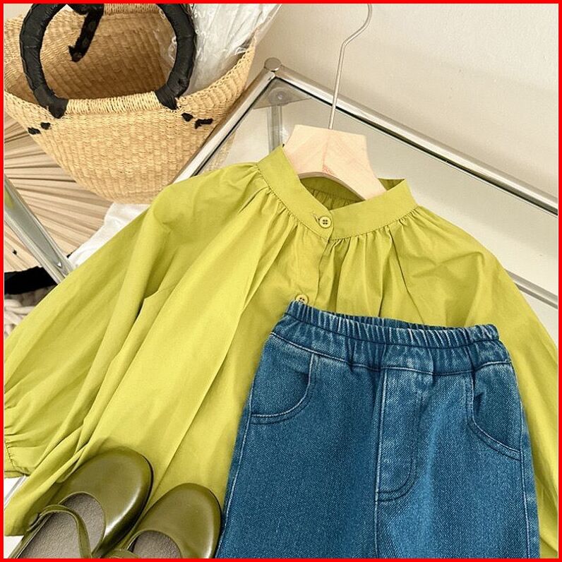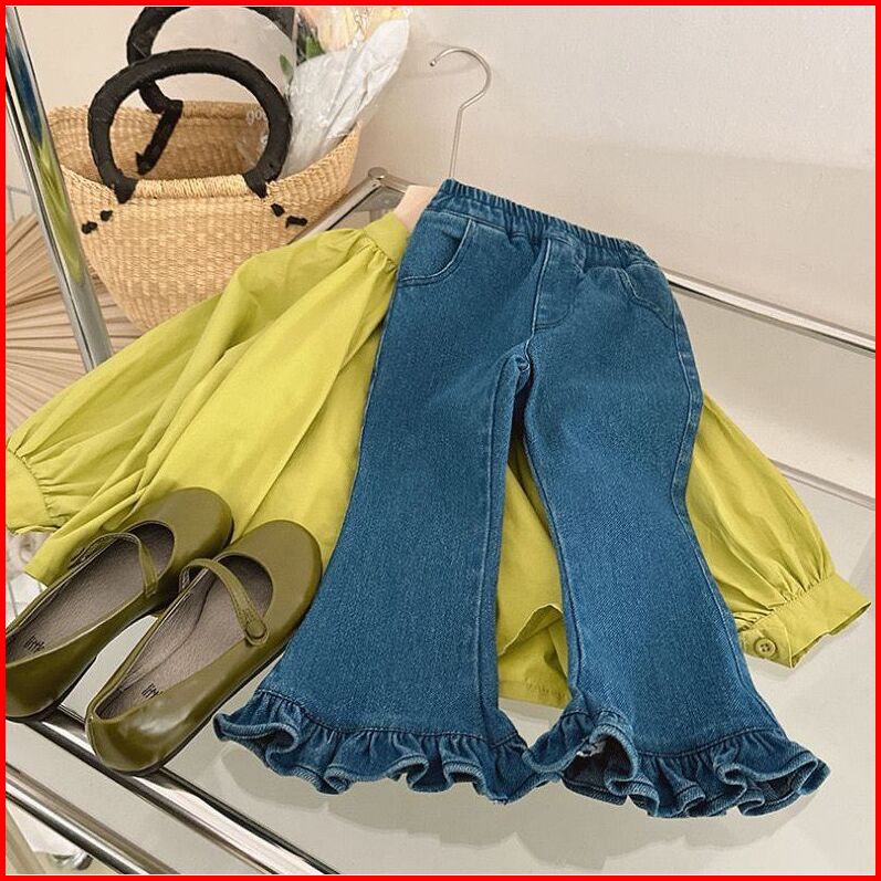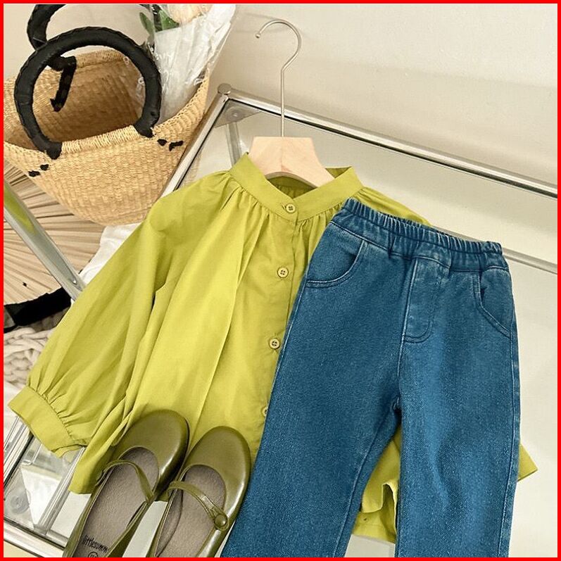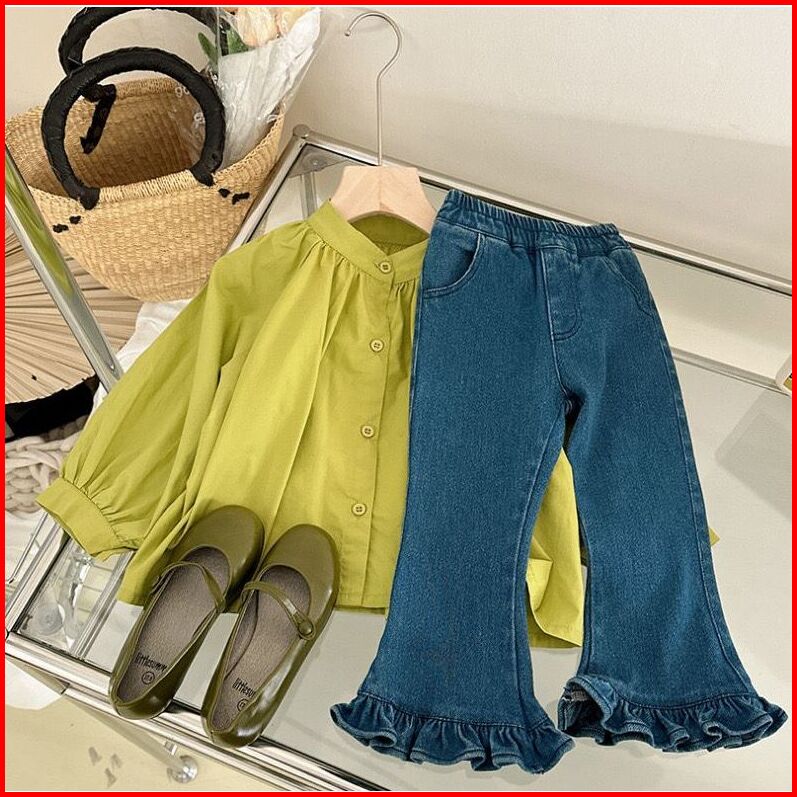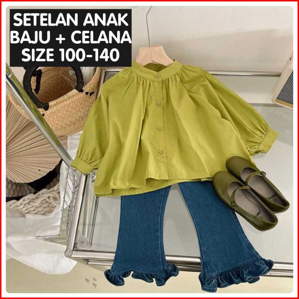 Loli-jkt Bs- 600 Setelan Anak Olive Blouse Celana Ctbray Jeans Sze 100-140