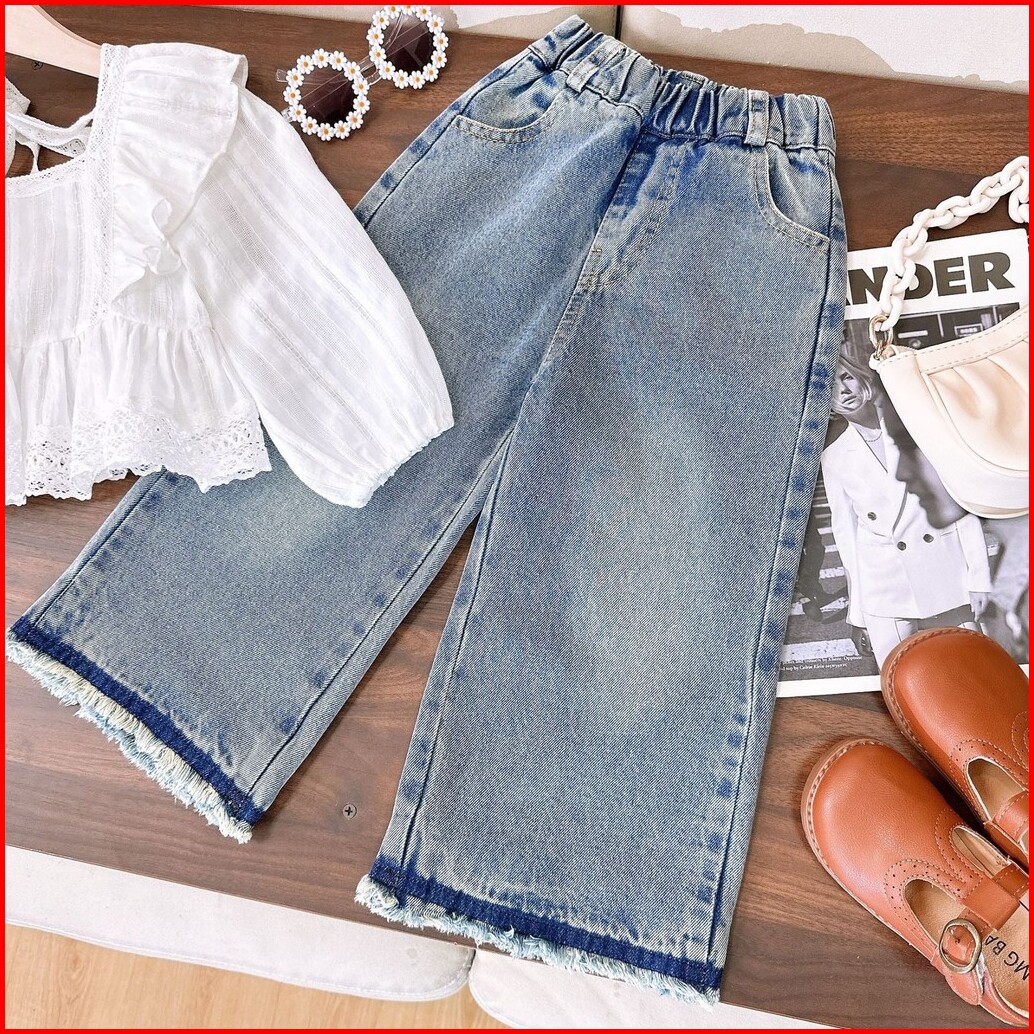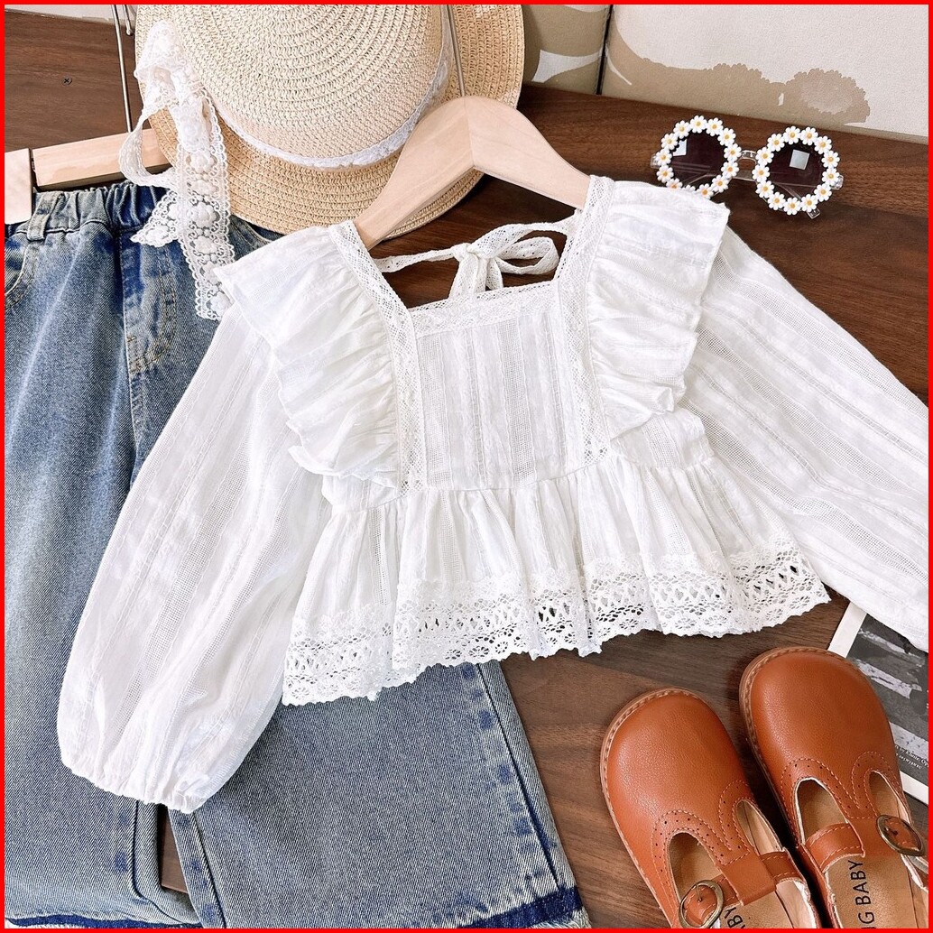 363751 - Setelan Baju Blouse Lengan Panjang Celana Panjang Jeans Fashion Anak Perempuan - Motif Soft Lace