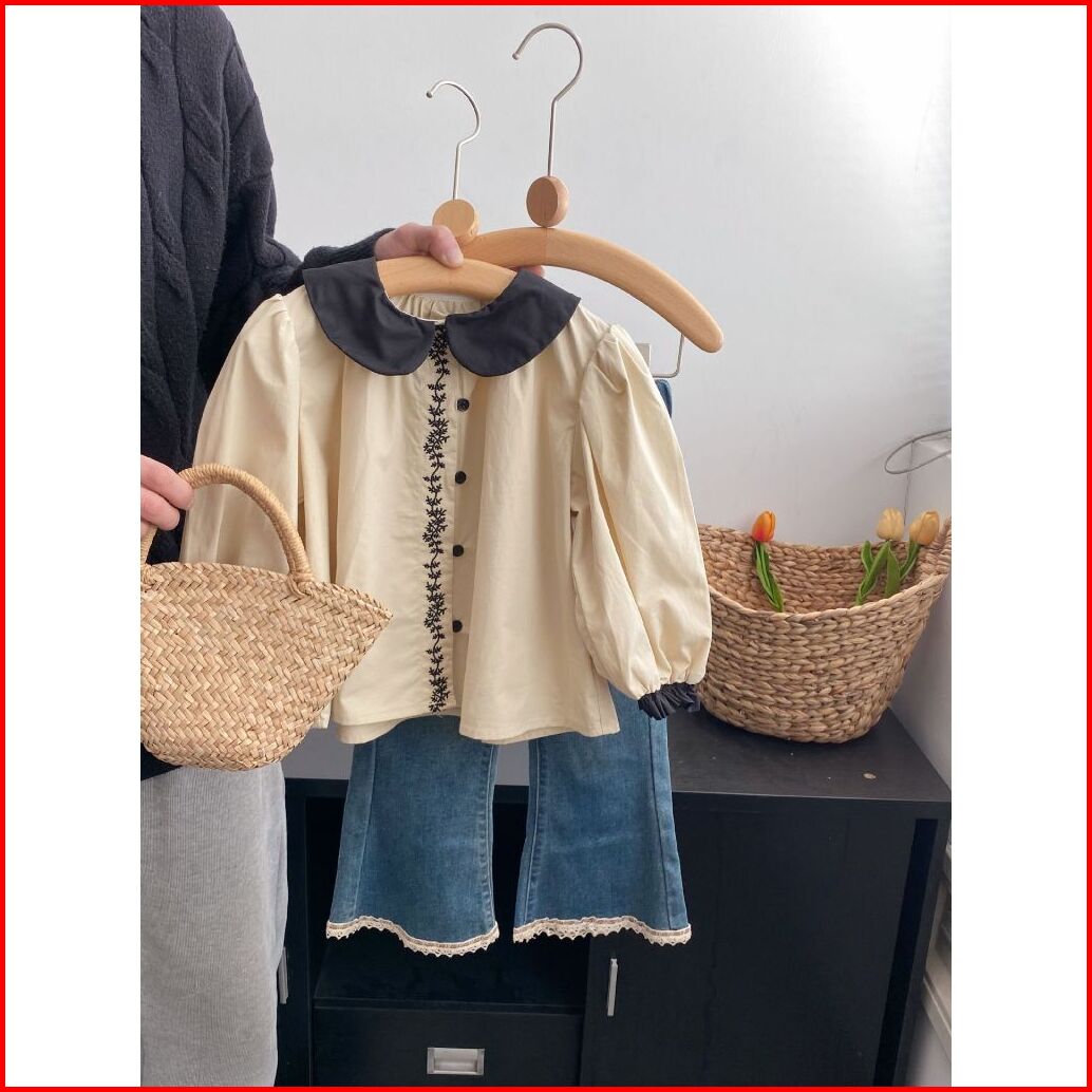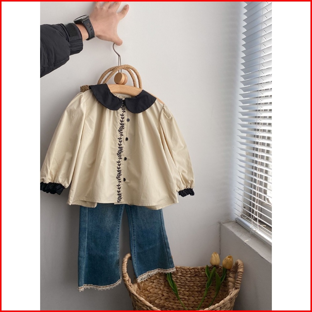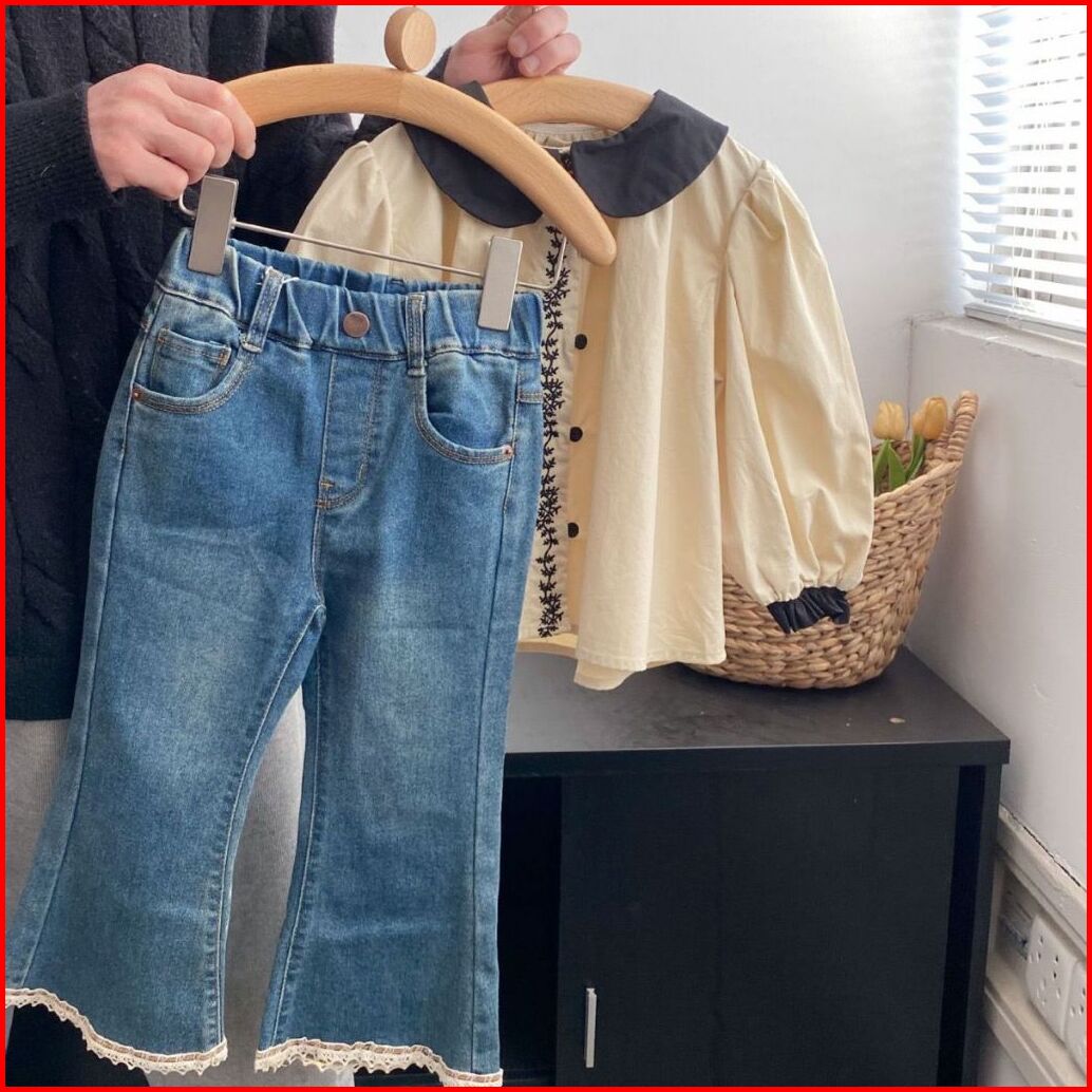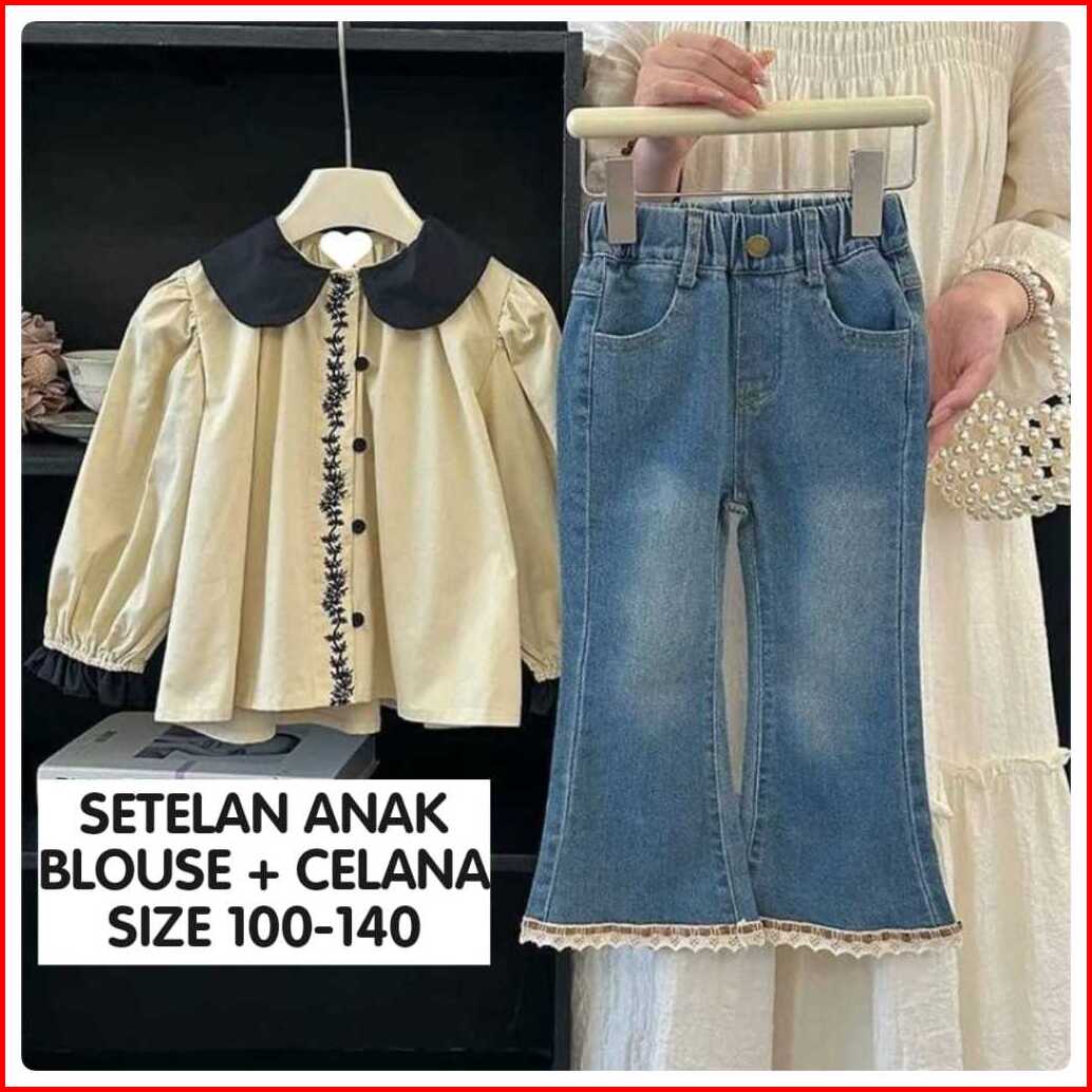 Loli-jkt Bs- 671 Setelan Anak Blose Cream Peterpan Collar Celana Jeans Size 100-140