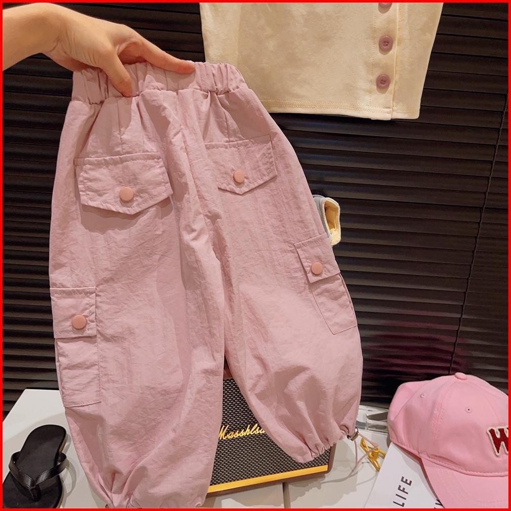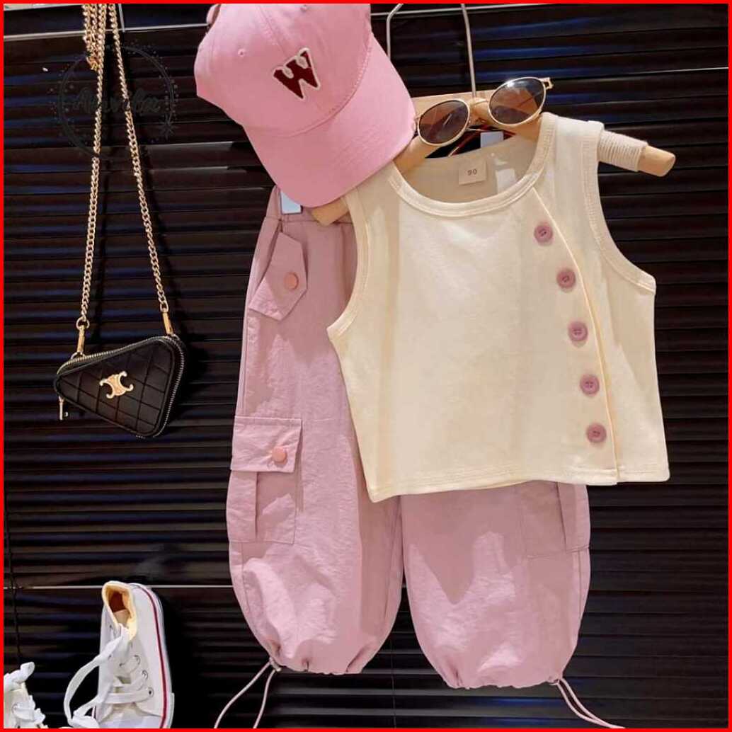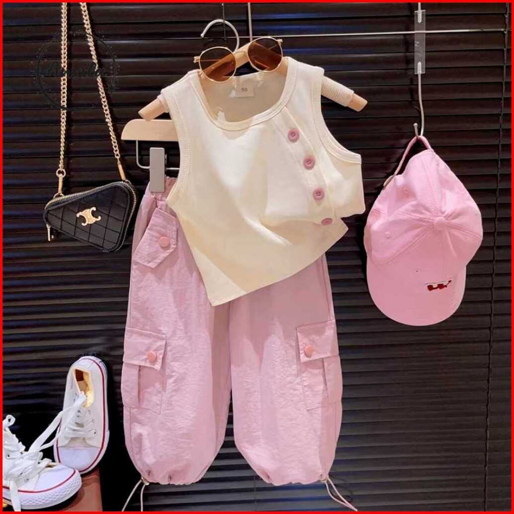 Setelan Anak Perempuan Import Tanpa Lengan Model Celana Kantong New Fashionable