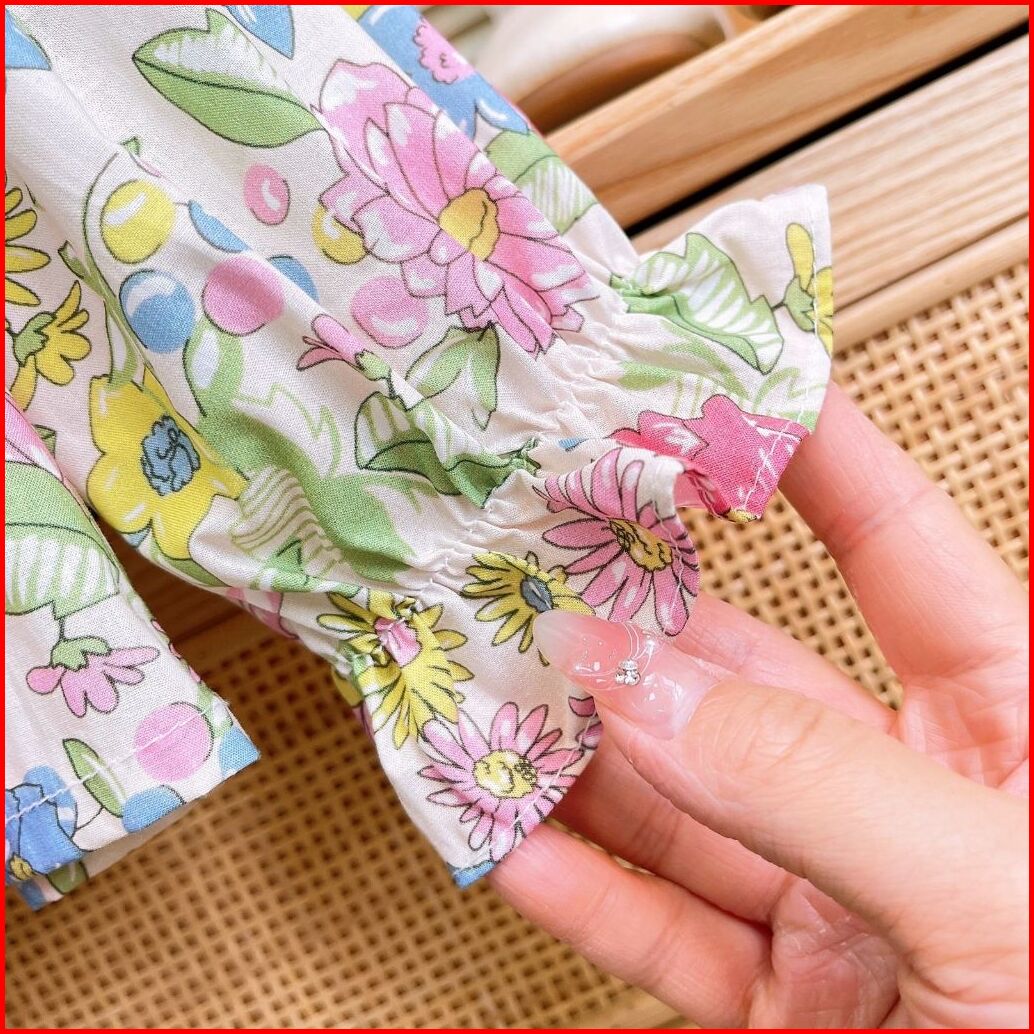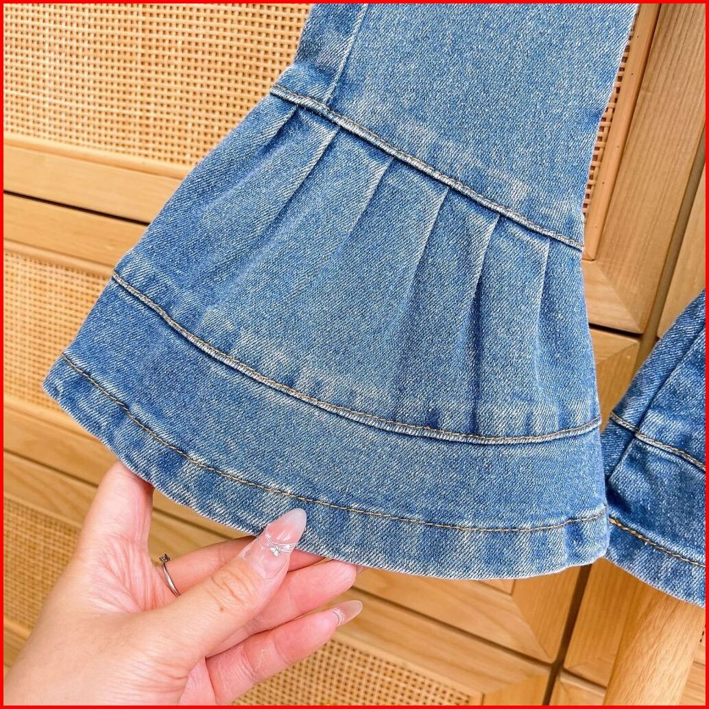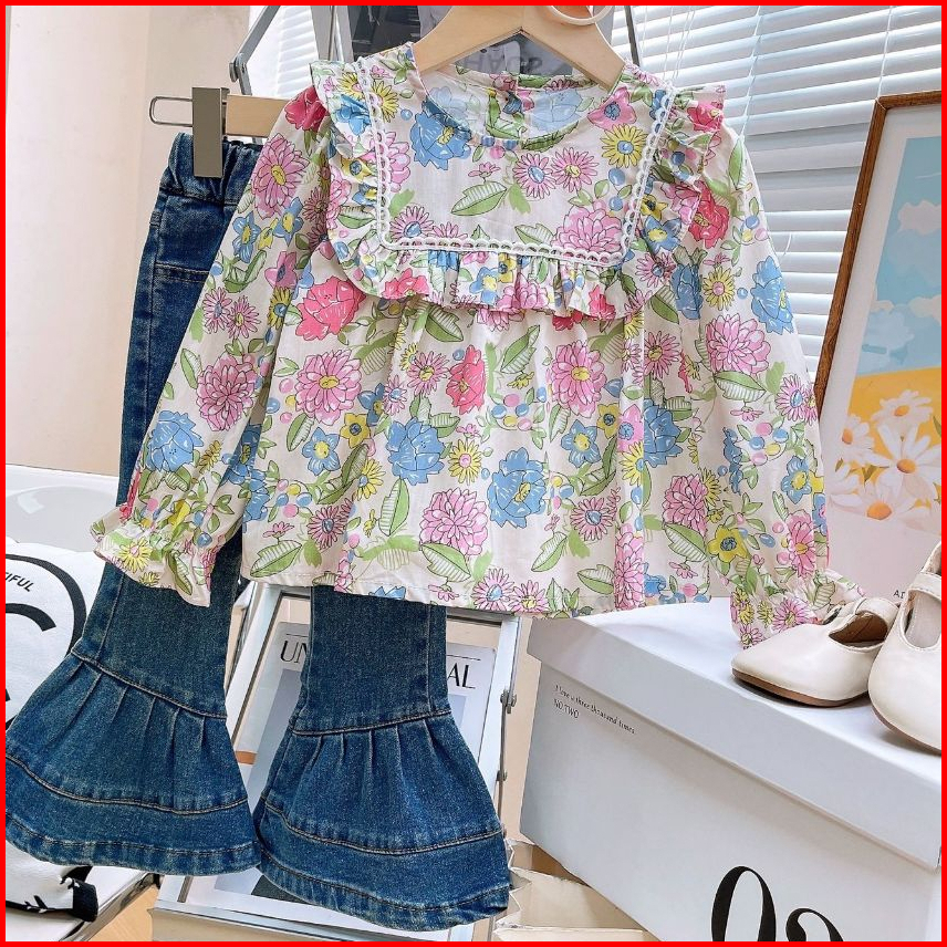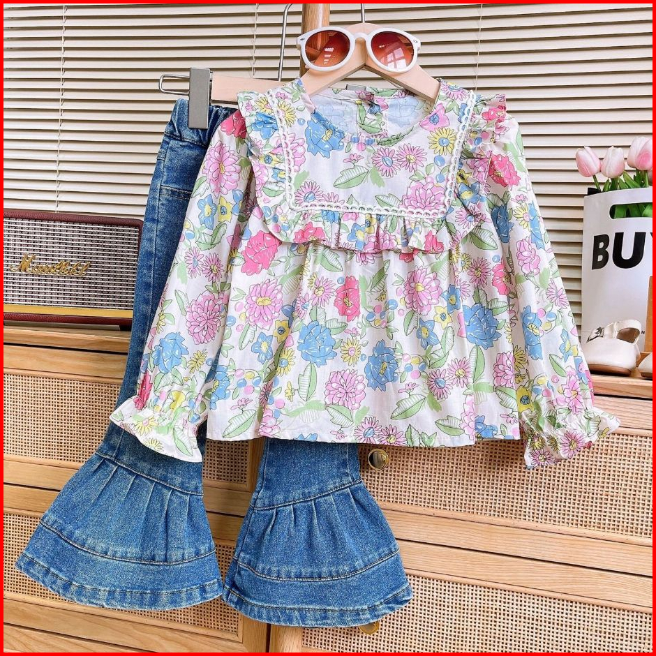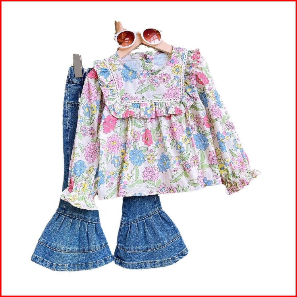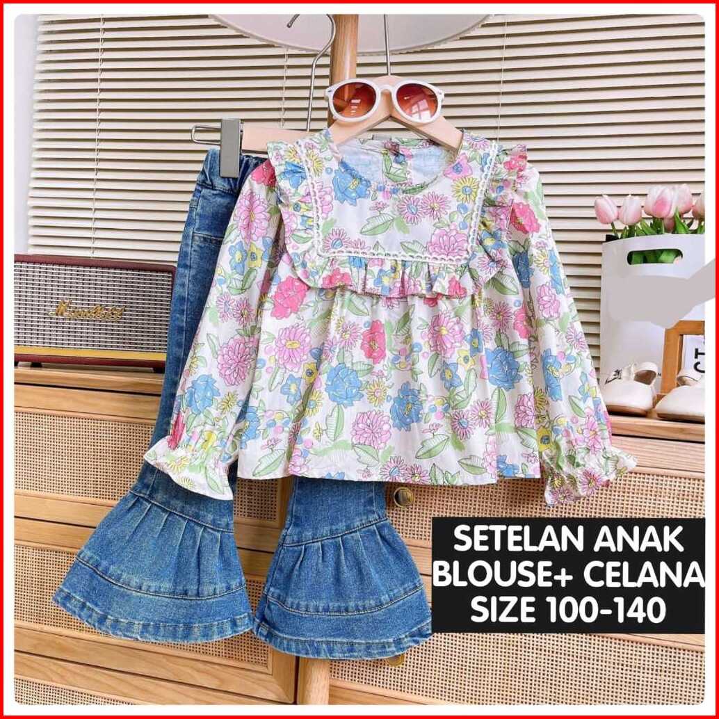 Loli-jkt Bs- 741 Setelan Anak Blouse Full Bunga Celana Jeans Panjang Size 100-140