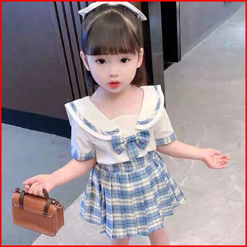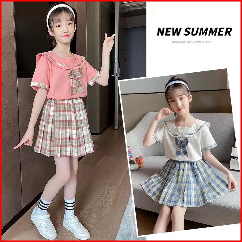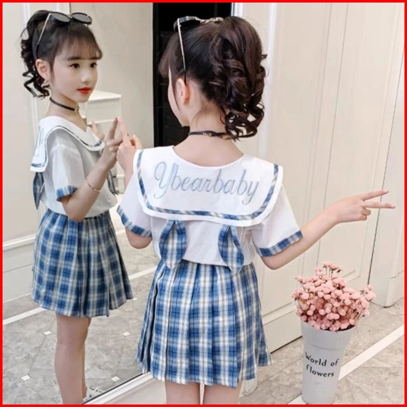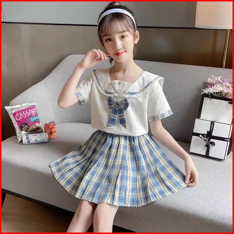 Setelan Rok Uniform Import Setelan Rok Anak Korean Style Setelan Kemeja Rok 4-14 Tahun