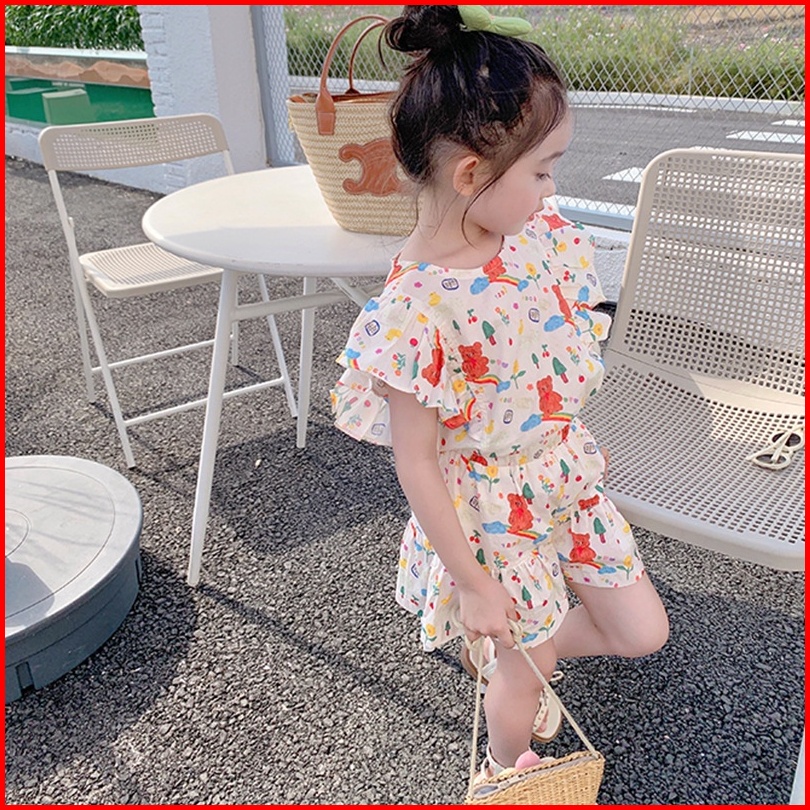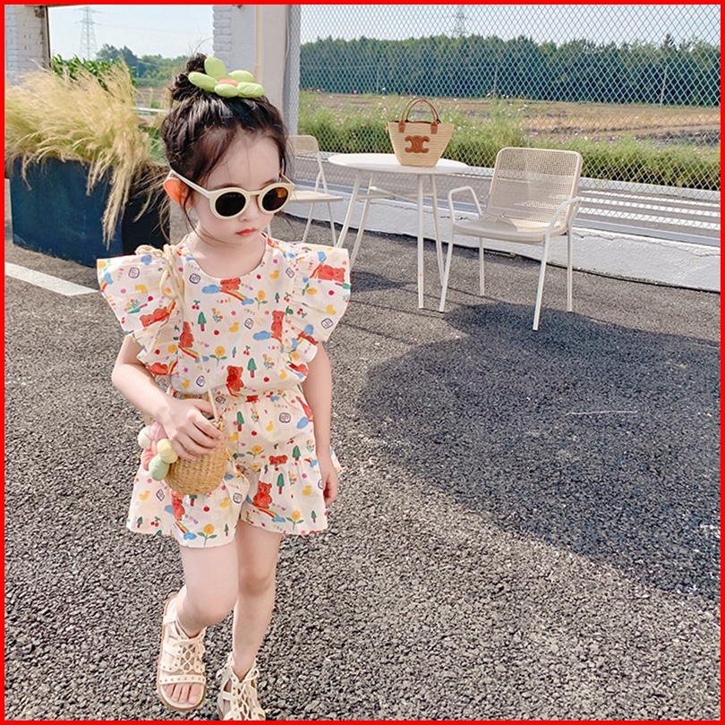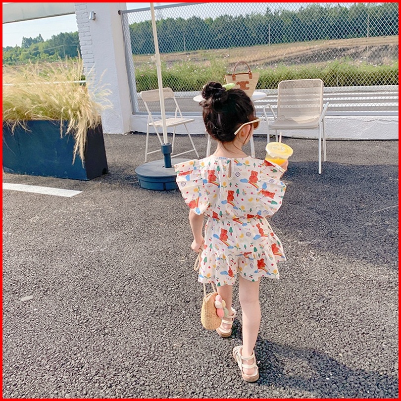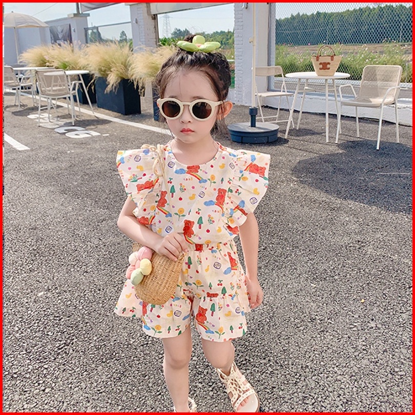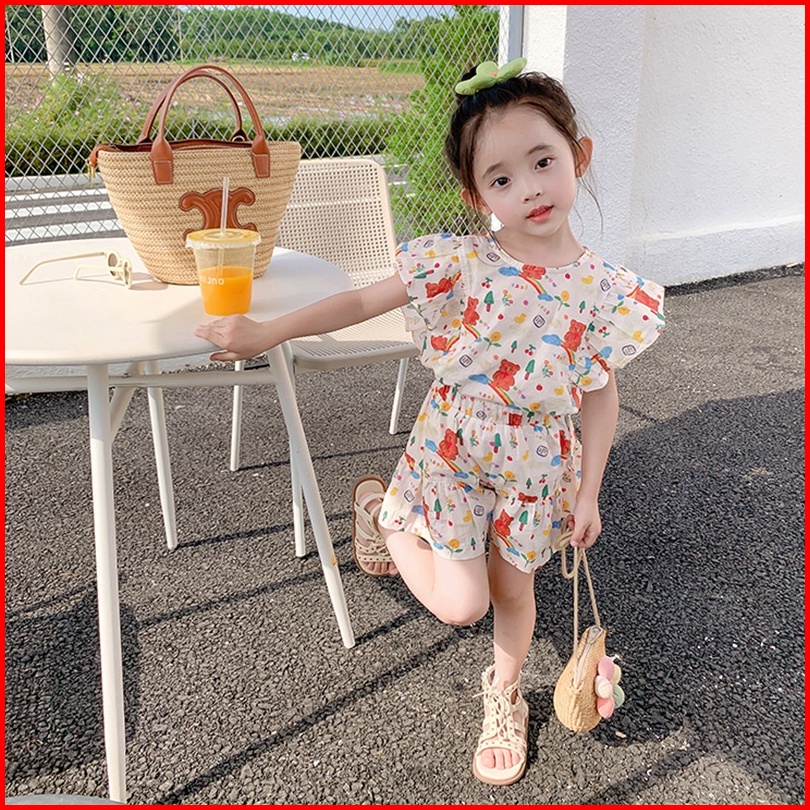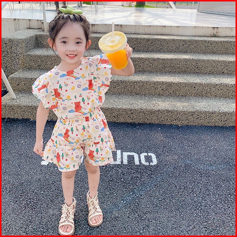 Haasya Kids 2-8 Tahun Setelan Anak Perempuan Usia Musim Panas Baru Kartun Korea Cetak Dua Potong Set Atasan Dan Celana P
