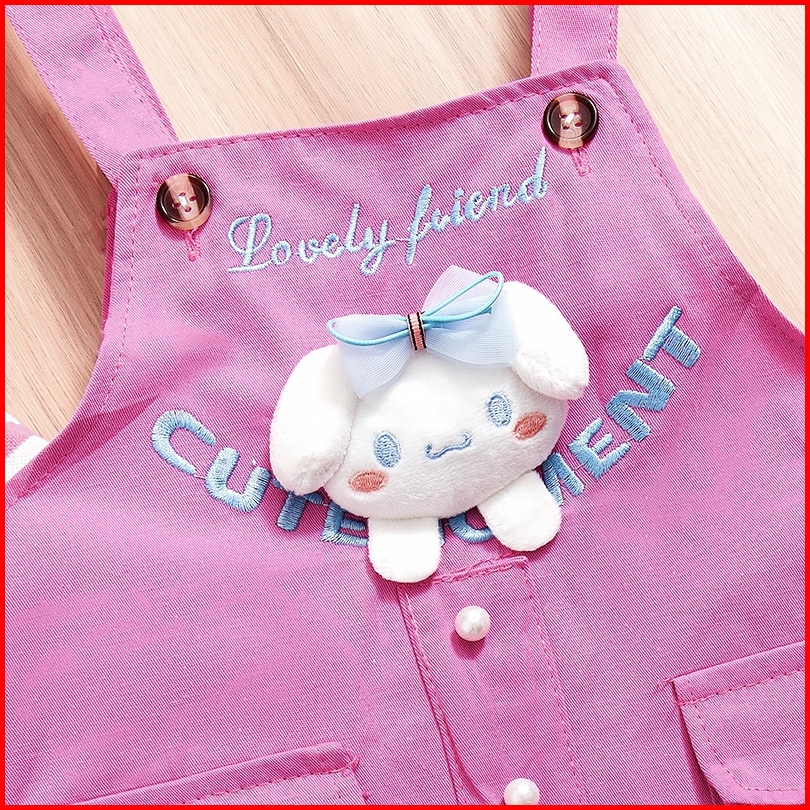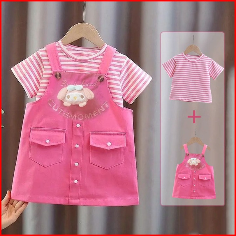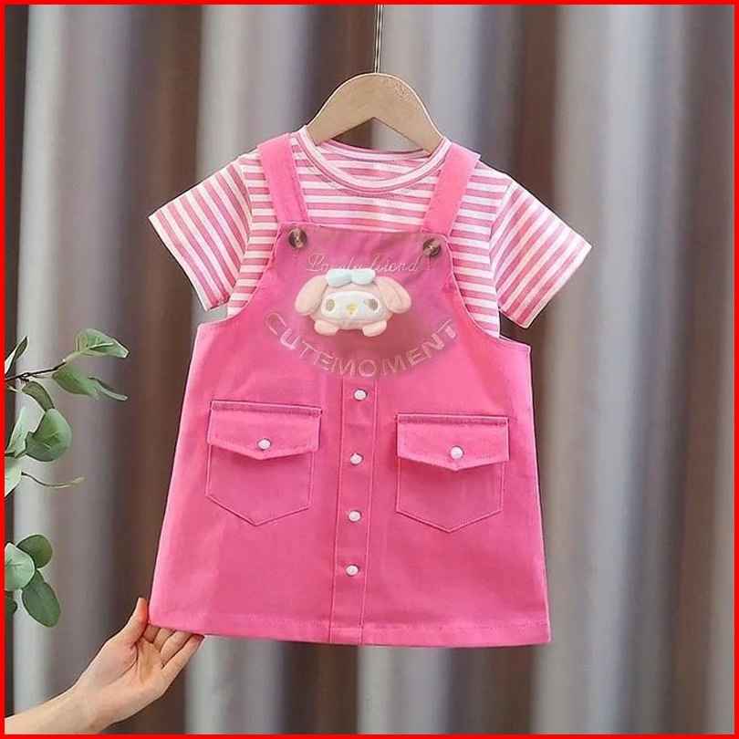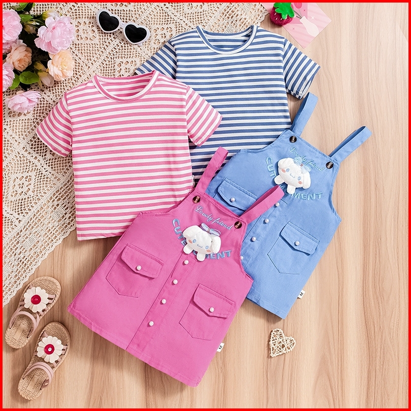 Rainbow Setelan Korea Anak Perempuan Usia 1-4tahun Rok Suspender Kartun Lengan Pendek Dua Potong Set