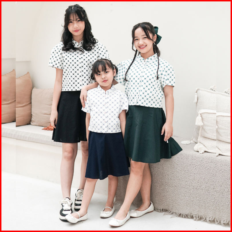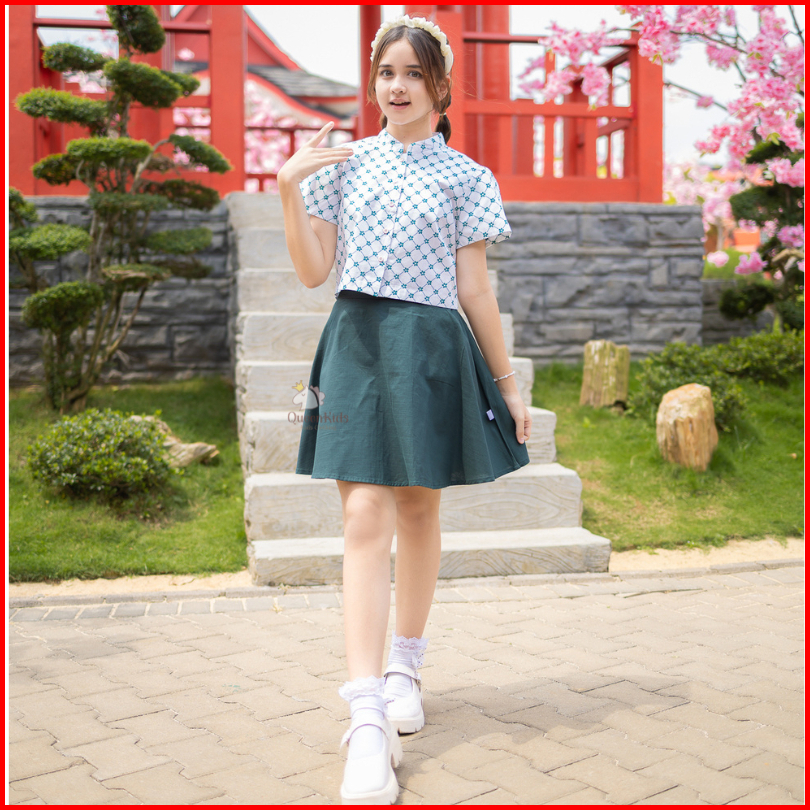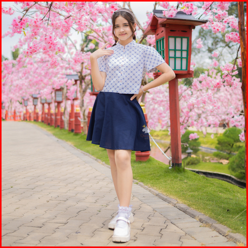 Queenkids - Jisoo Set - Setelan Anak Perempuan Motif Baju Rumahan - Baju Anak Perempuan Bawahan Rok