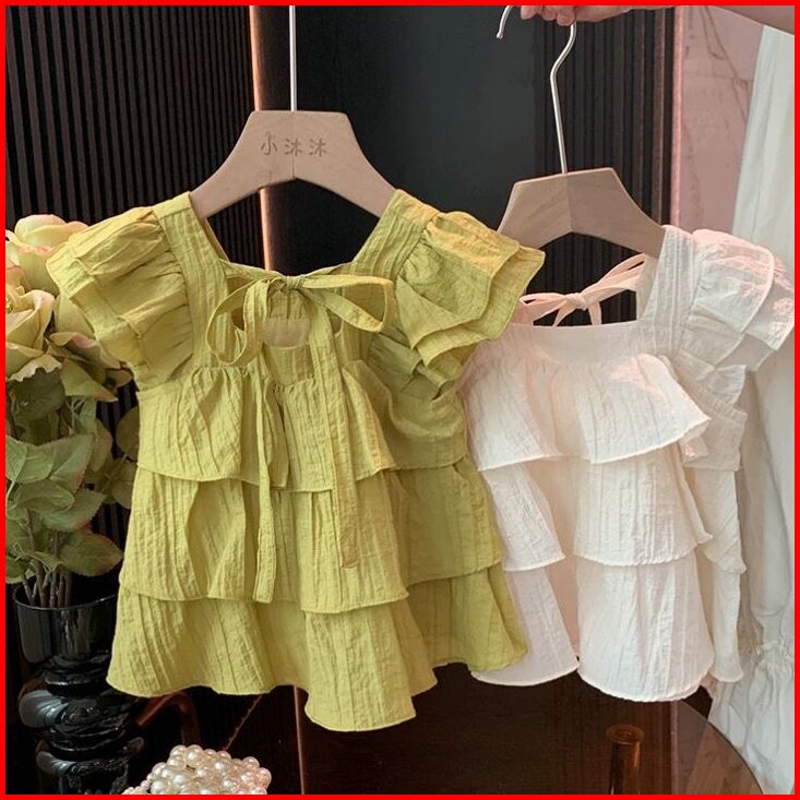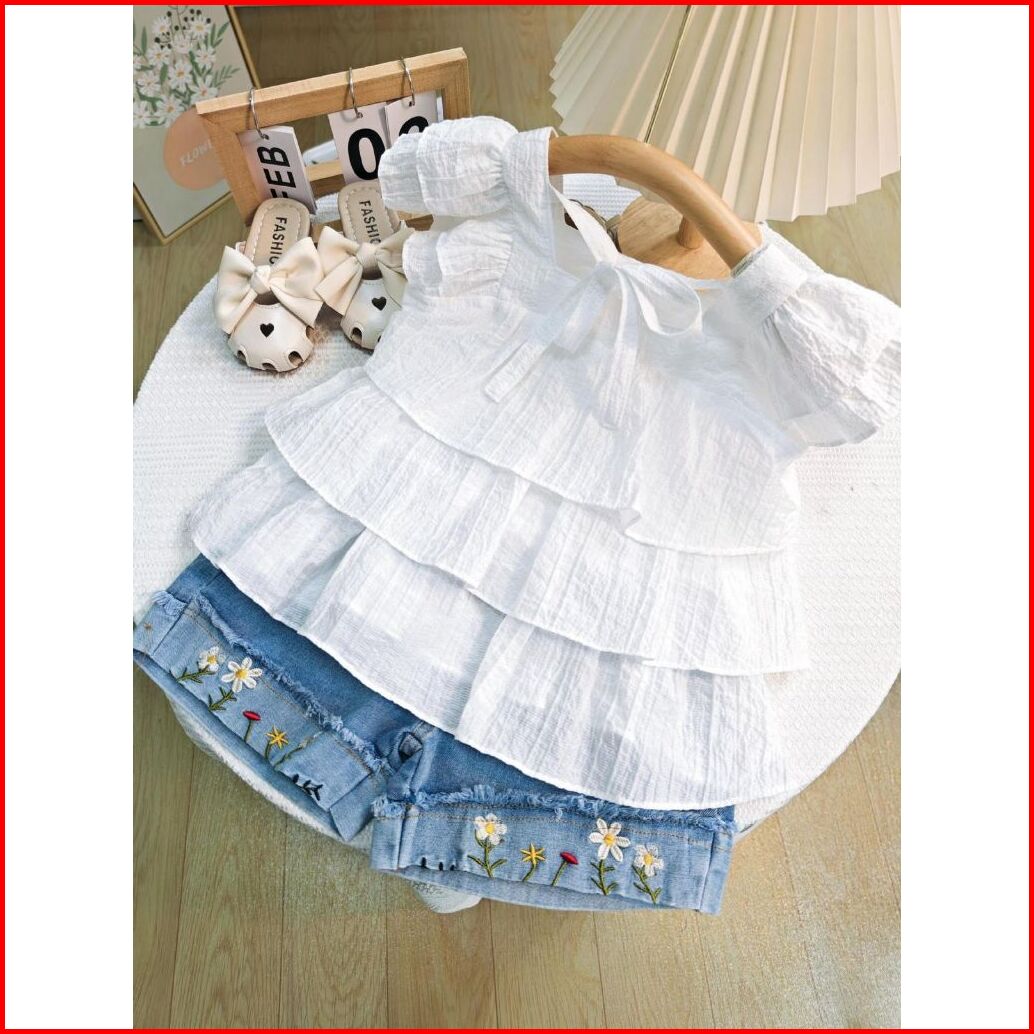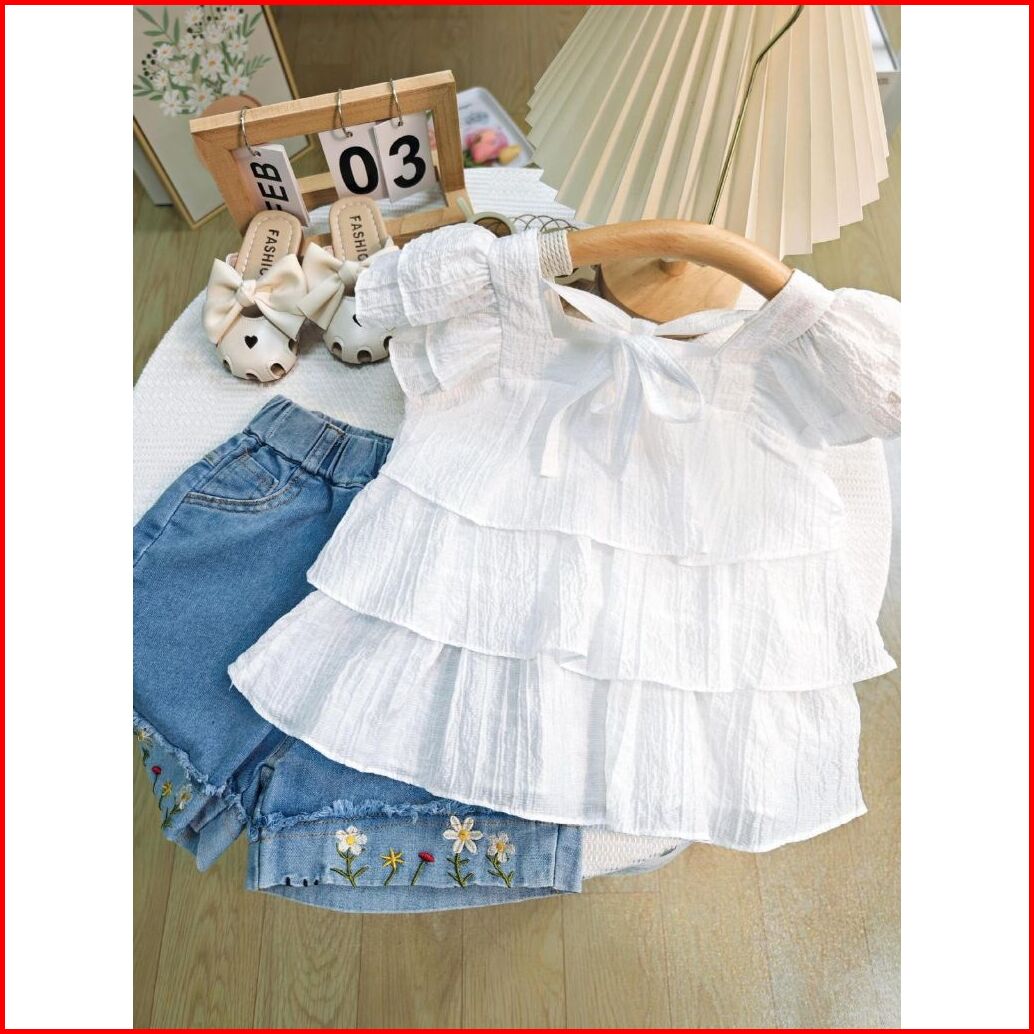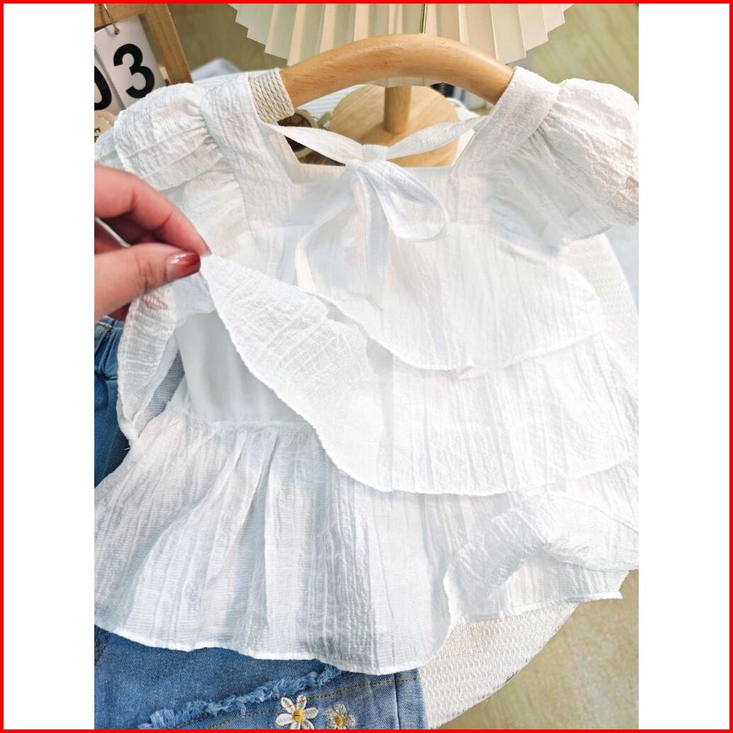 Kidsfashionkoleksi 3001 Setelan Anak Perempuan Blouse Olivia Ruffle Pita White Olive