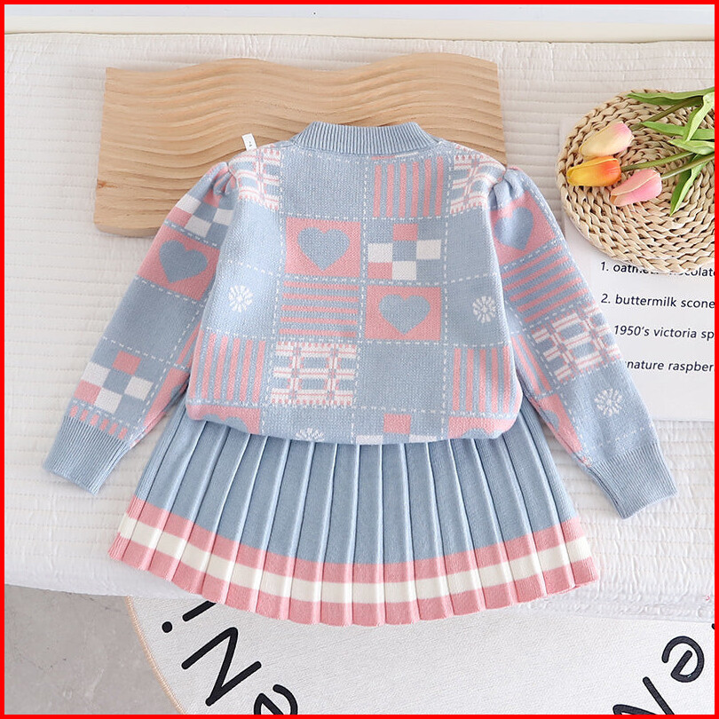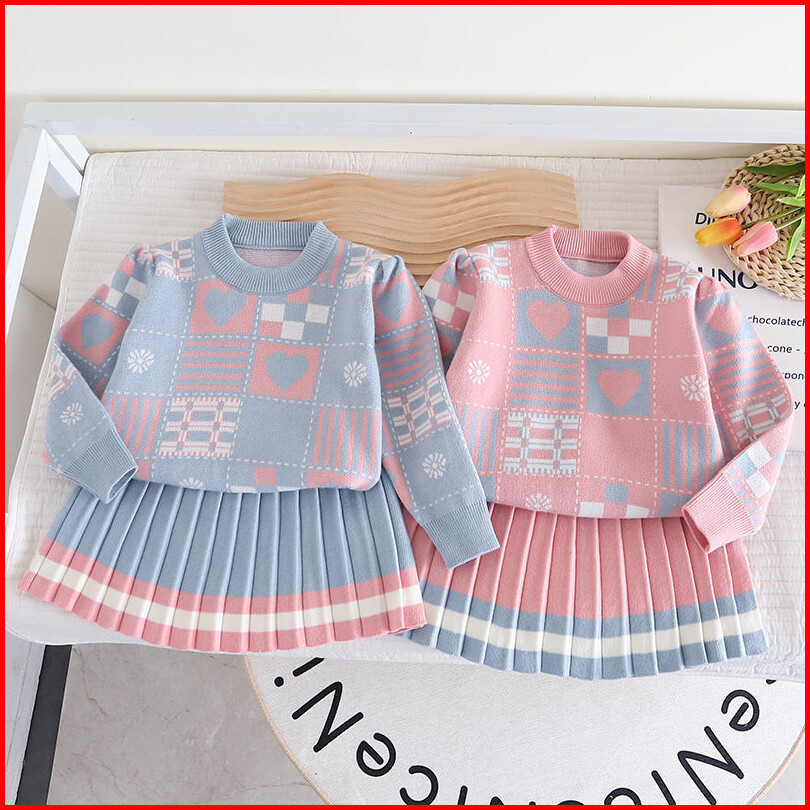 363692 - Baju Setelan Sweater Rajut Bawahan Rok Fashion Anak Perempuan - Motif Love Object