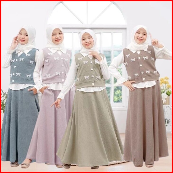 One Set Rok Remaja Tanggung Baju Setelan Anak Perempuan Kekinian Set Raya Bordir Anak Terbaru 2024