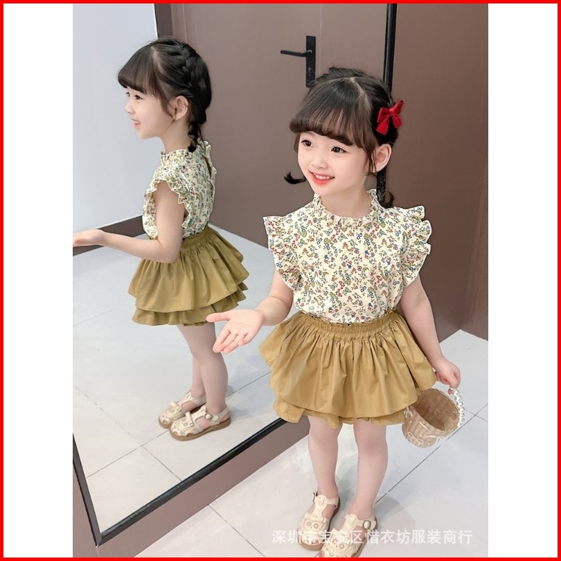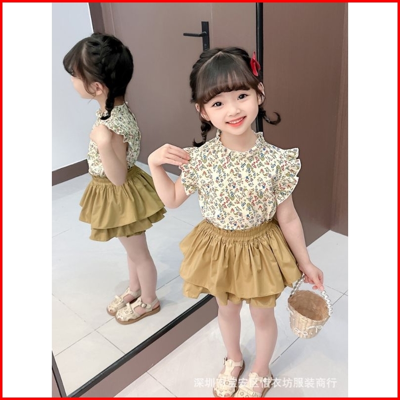 Setelan Anak Perempuan Import Set Rok Celana Set Blouse Kakinian