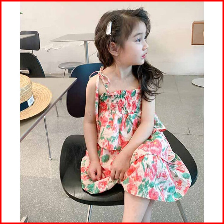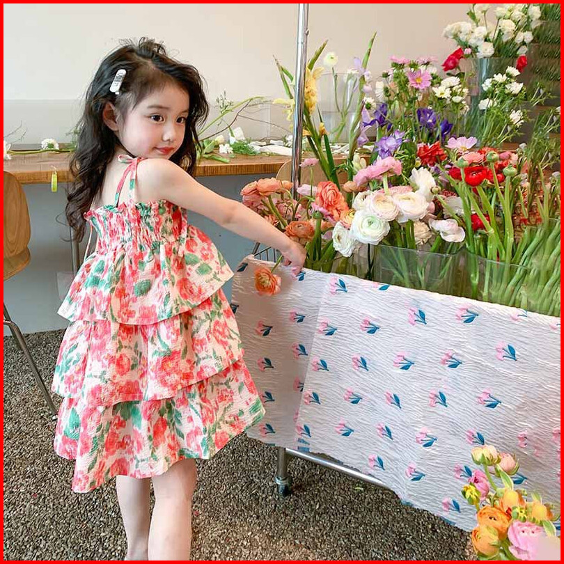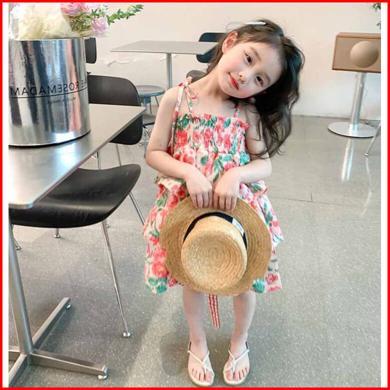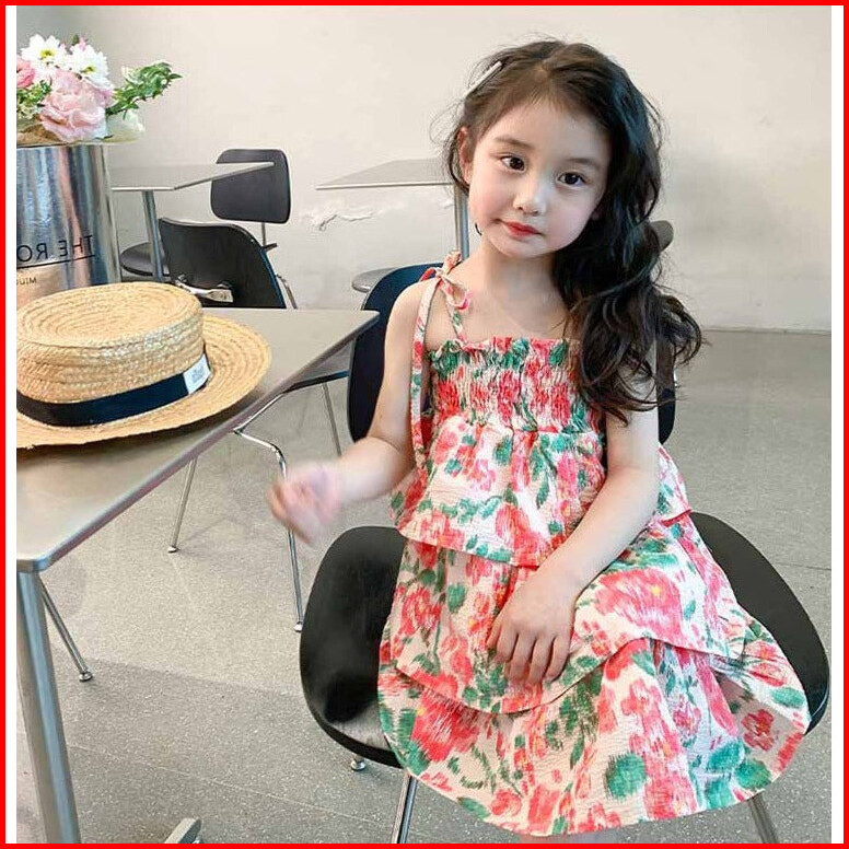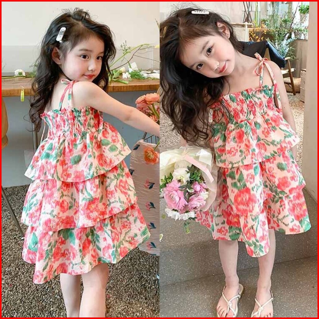 507950 - Baju Dress Lengan Kutung Anak Perempuan Fashion - Motif Wavy Bloom