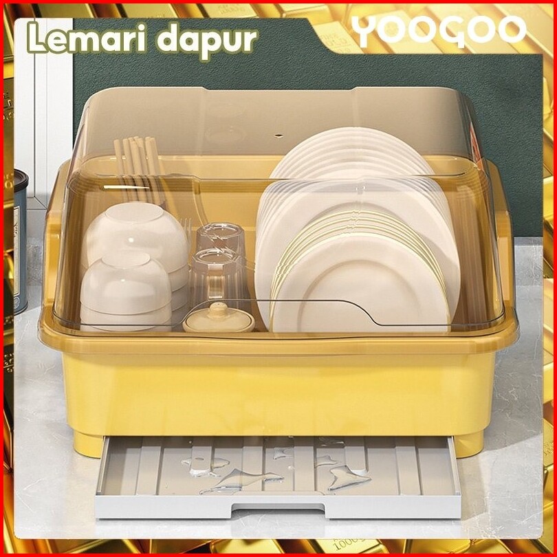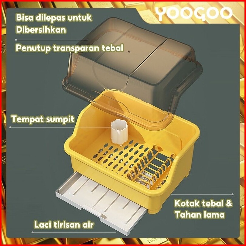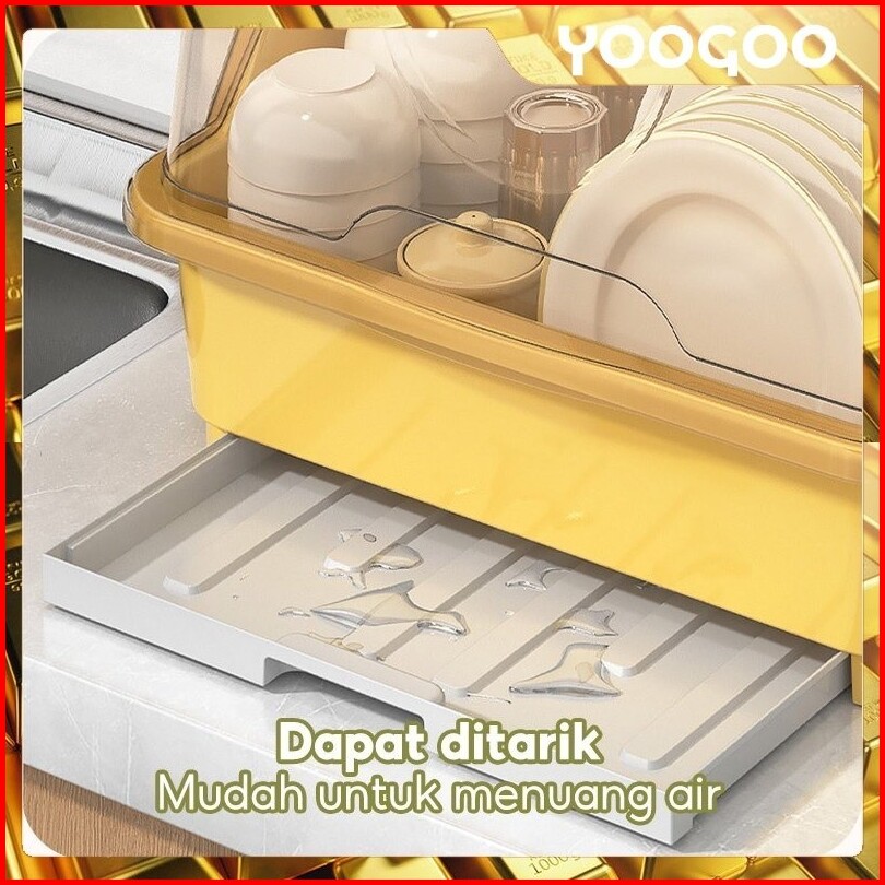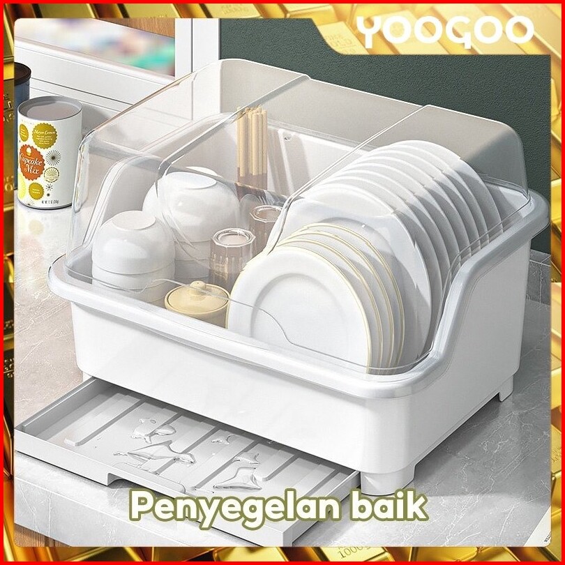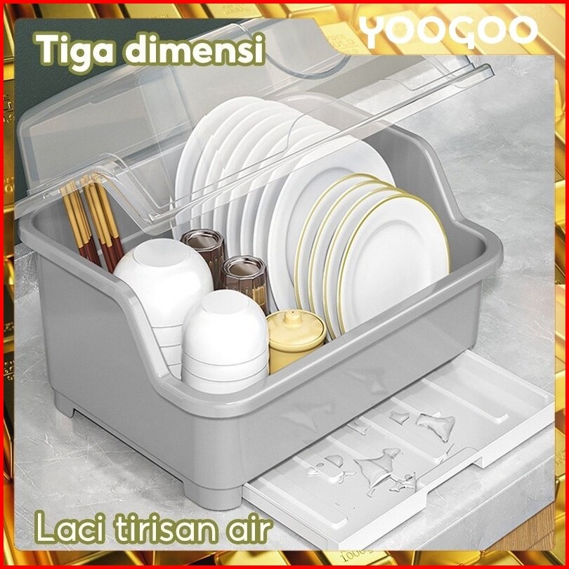Yoogoo Rak Piring Rak Pengering Piring Rak Piring Tertutup Penyimpanan Piring Basah