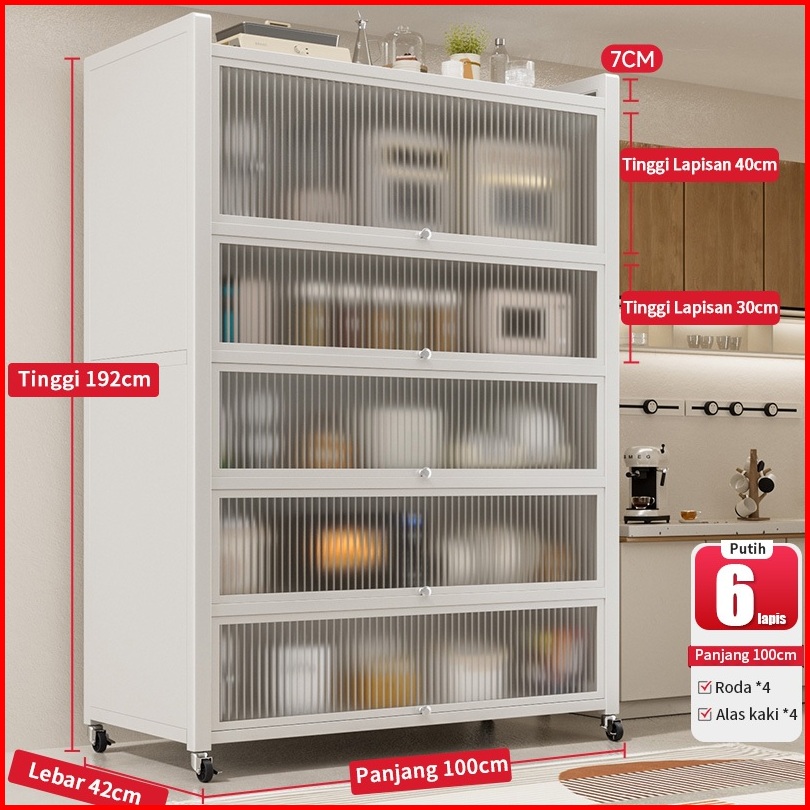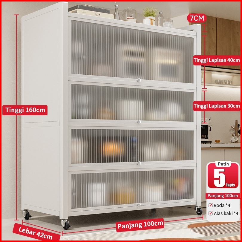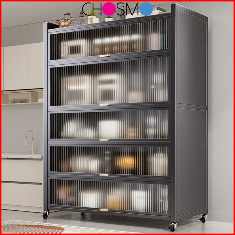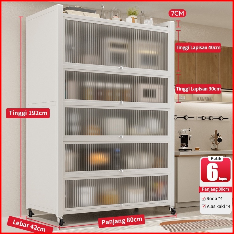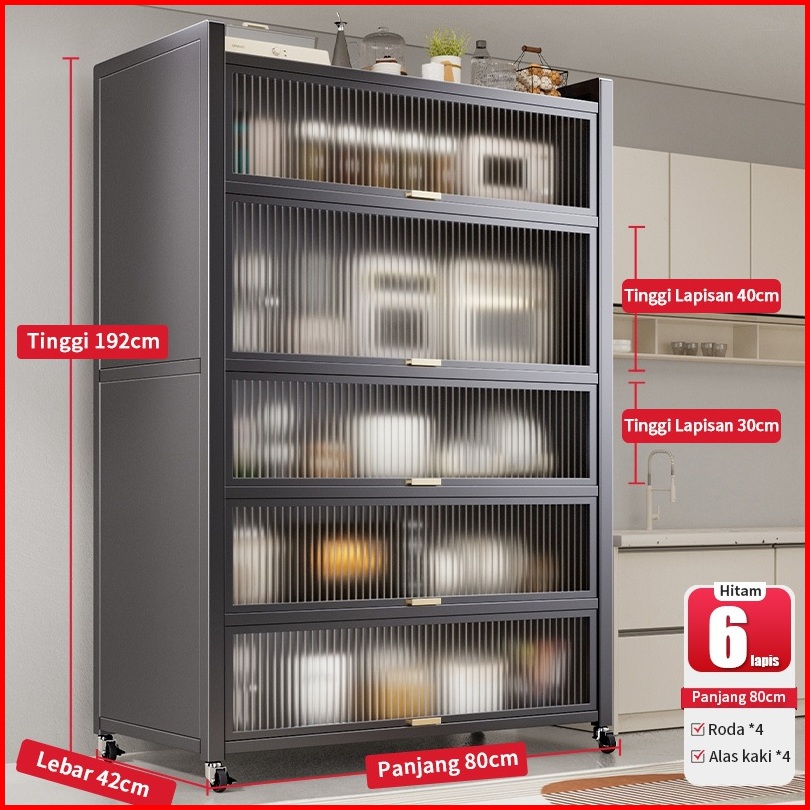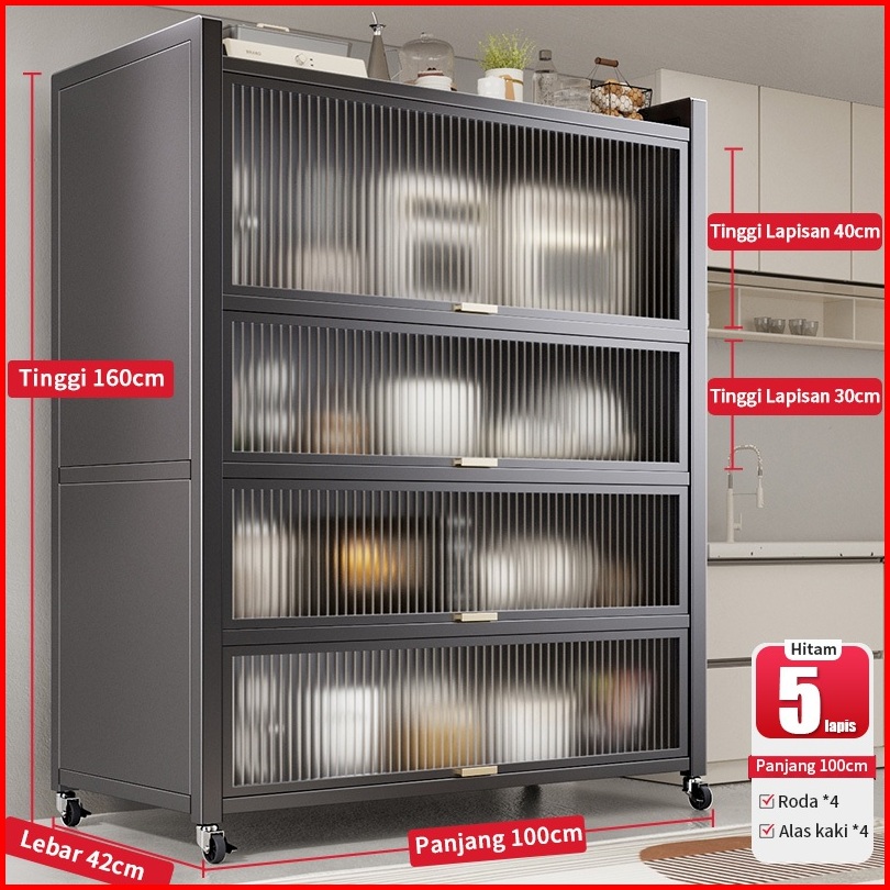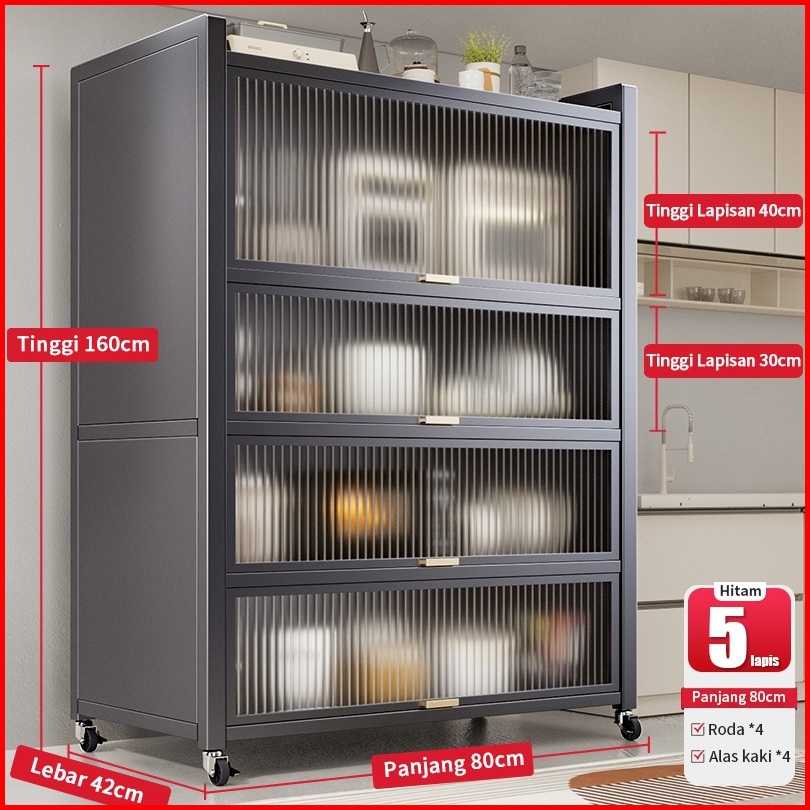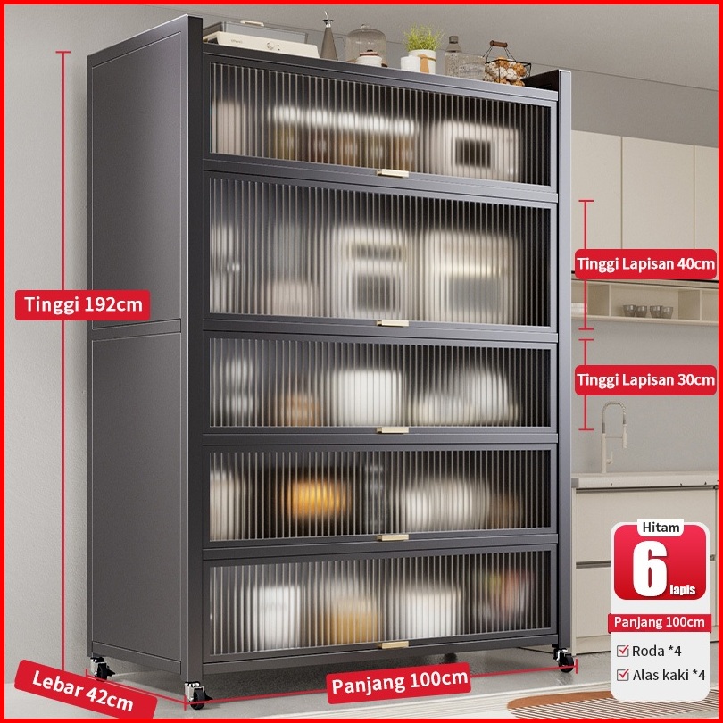 Rak Dapur Lemari Piring Multi-layer Lemari Dapur Berdiri Di Lantai Dengan Rak Penyimpanan Kabinet Pintu Rak Oven Microwa