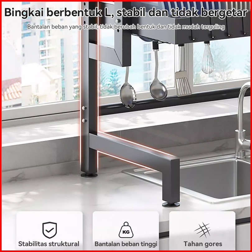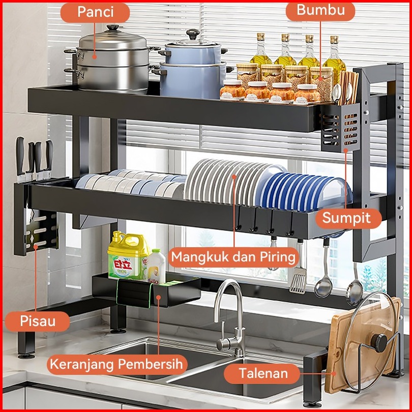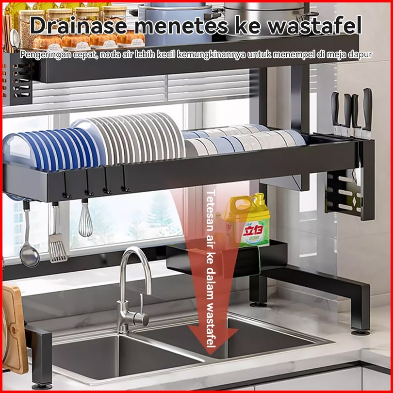 Rak Dapur Stainless Steel Wastafel Rak Piring Rak Penyimpanan Mangkuk Sumpit Rak Pembuangan Piring