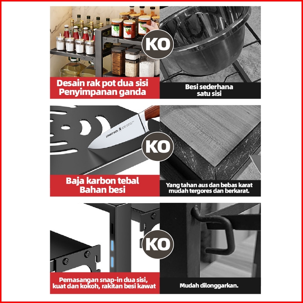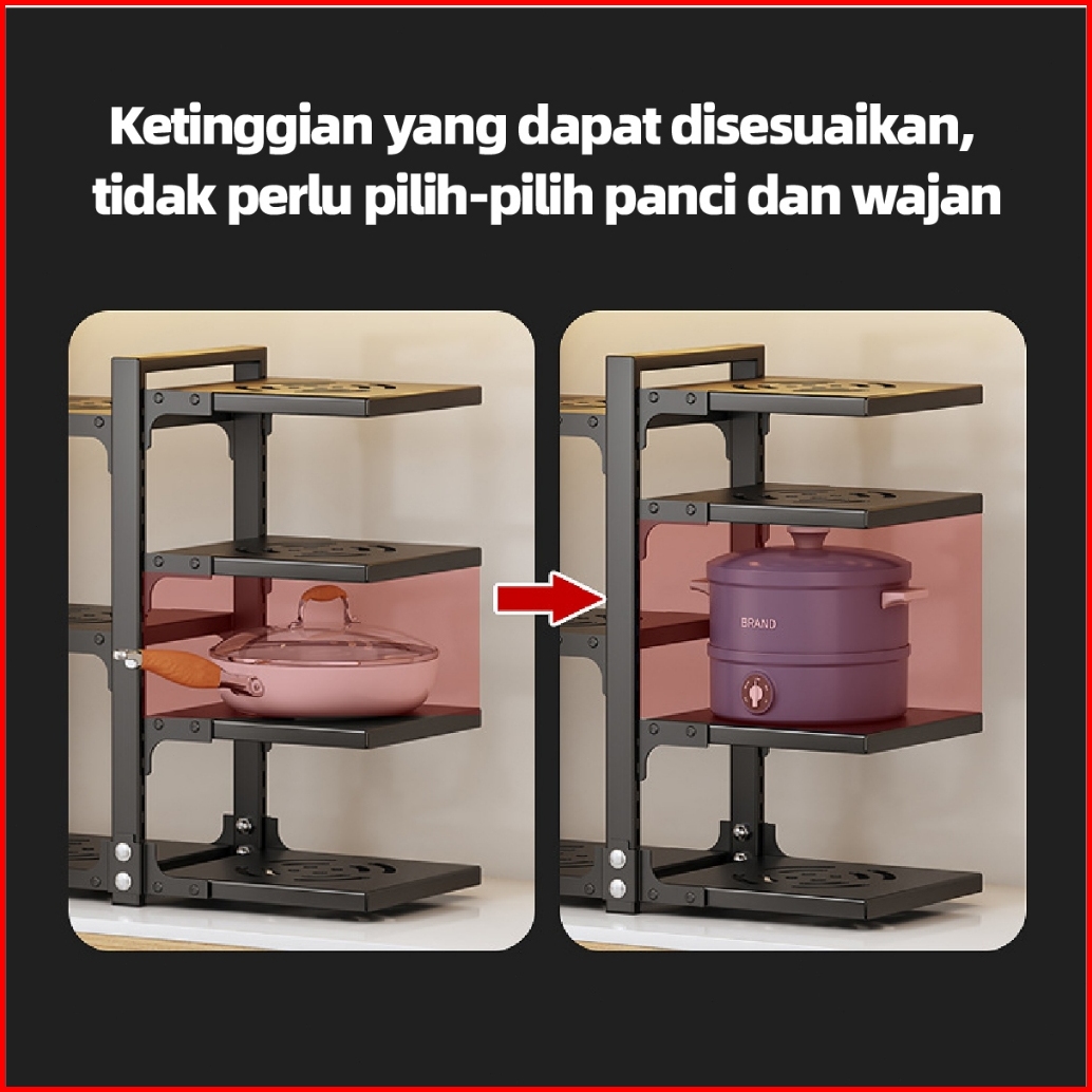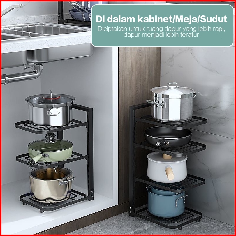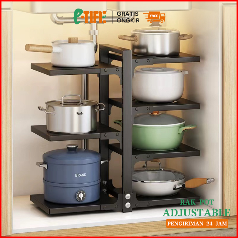 E-tife Rak Pot Rak Panci Susun Rak Bawah Wastafel Rak Dapur Stainless Steel 3 4 5 Tingkat